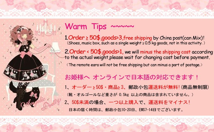 Order ≥ 50$,goods>3,we will provide free shipping by China post(can Mix)!(Shoes,bags,such as a single weight over 0.5kg goods,not in this activity.)