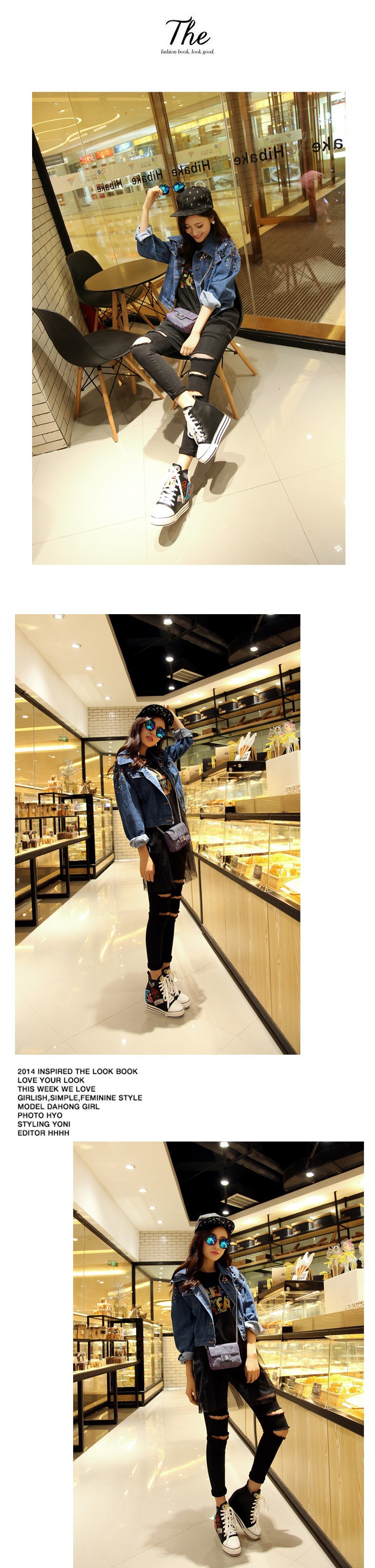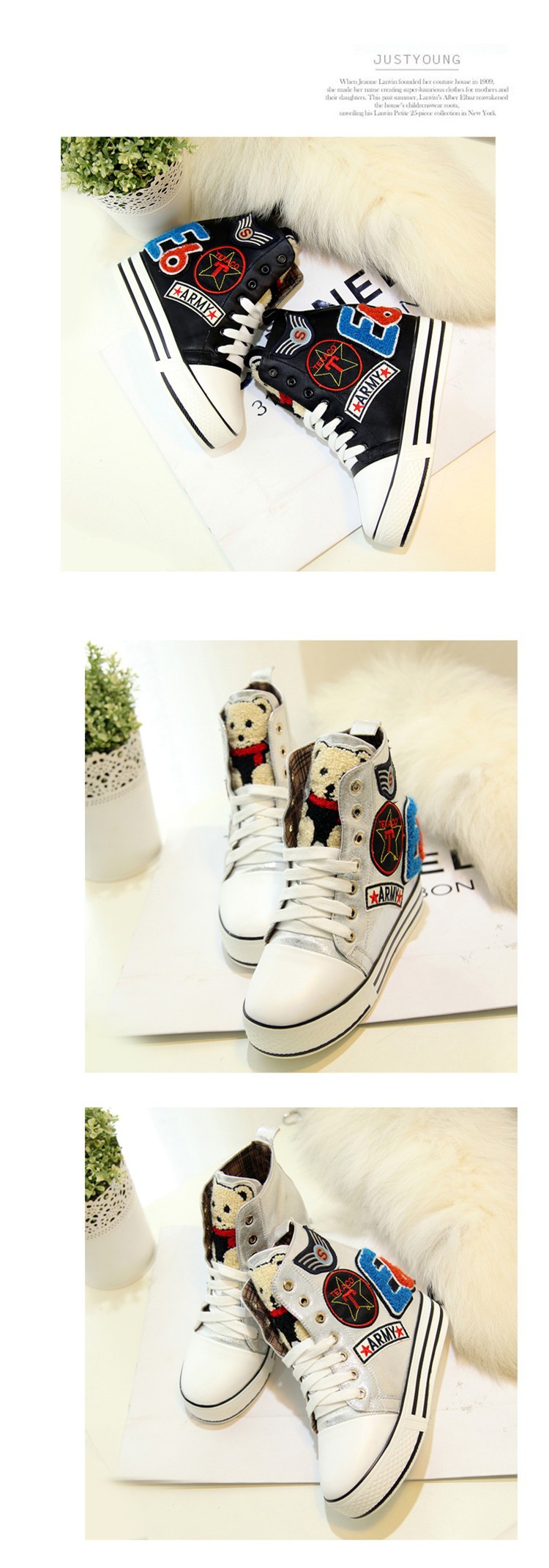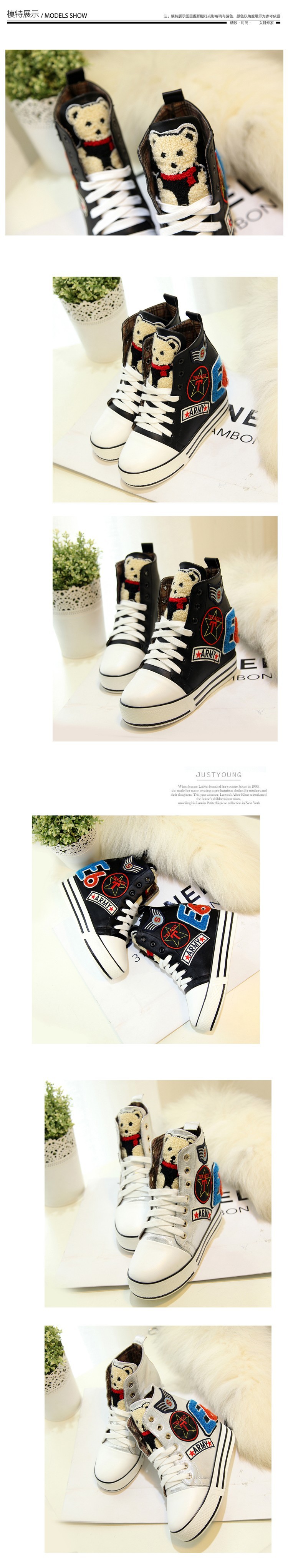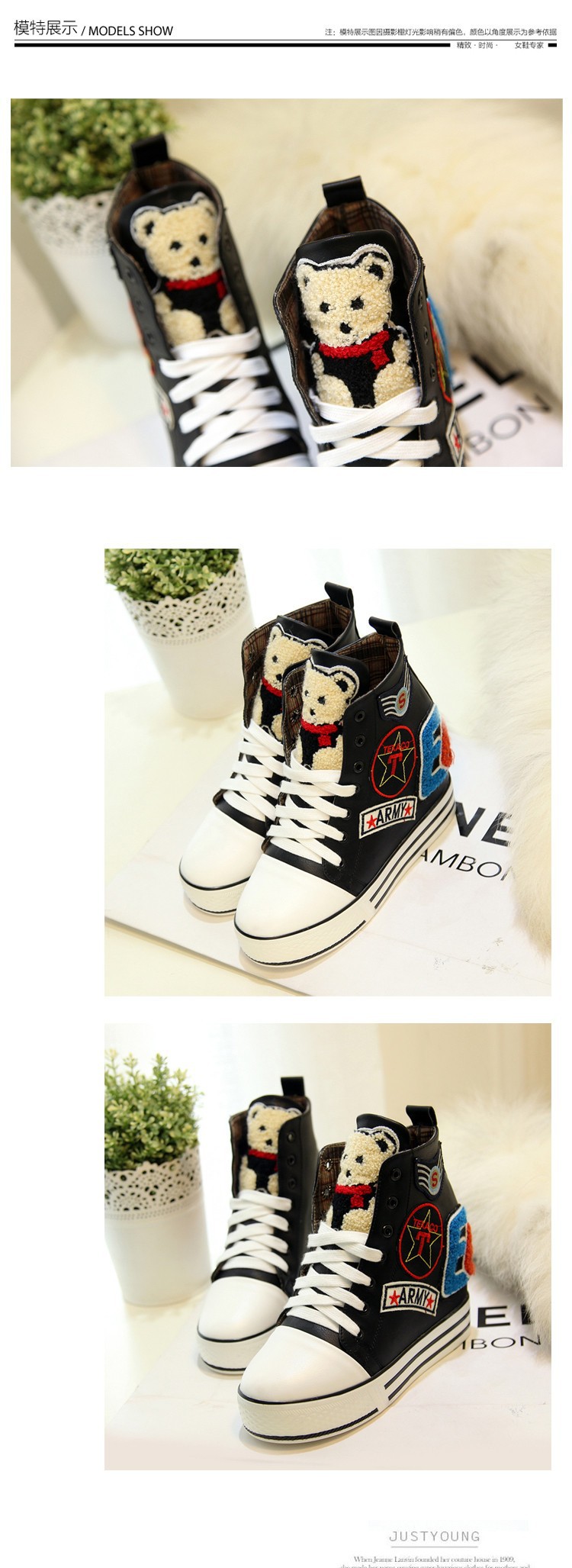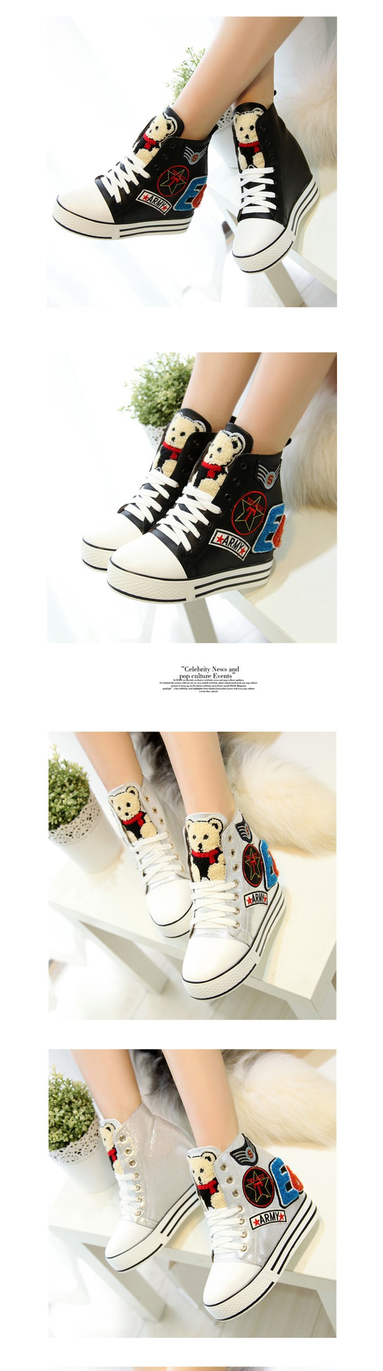 PU cartoon little bear decorated height increasing fashion sneakers women shoes high heels comfortable for spring autumn