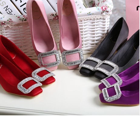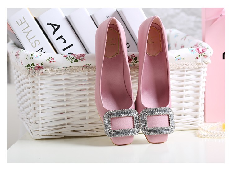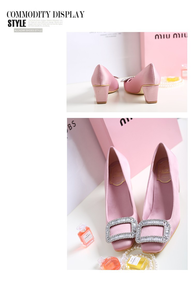 Rhinestone Fashion Ladies Square Toe Pink Square Heels Bridal V Wedding Shoes For Women High Purple Heels Casual Black Pumps