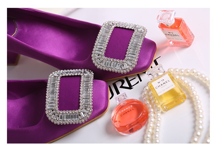 Rhinestone Fashion Ladies Square Toe Pink Square Heels Bridal V Wedding Shoes For Women High Purple