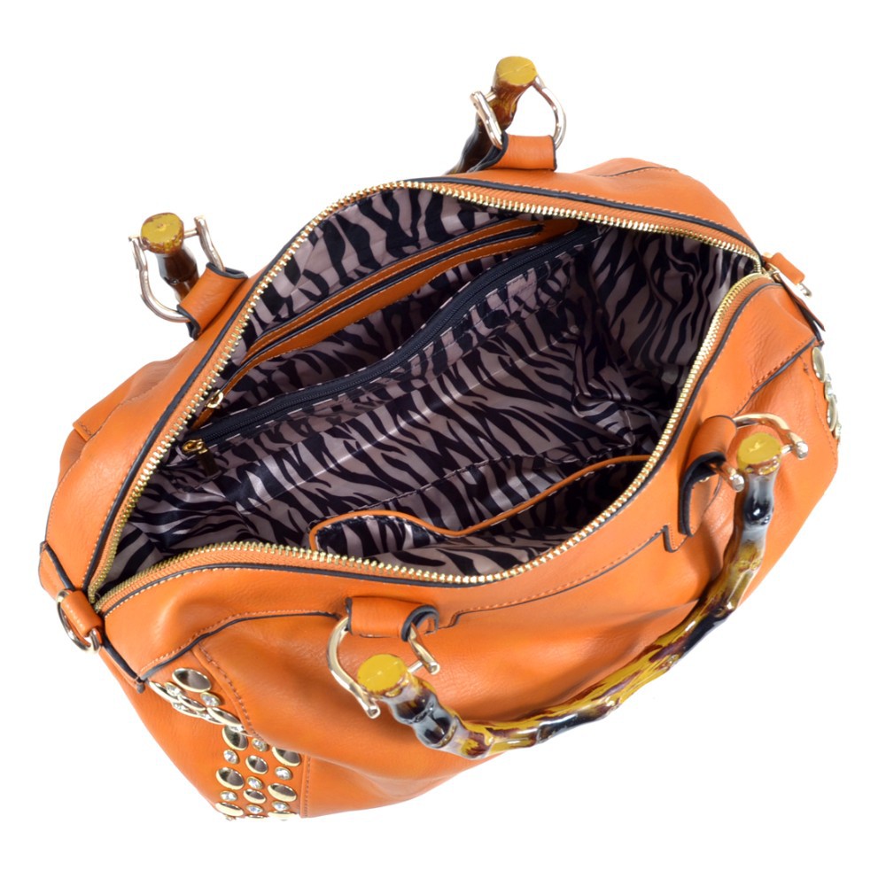 Add a little bling to your step! Touchably soft and ultra chic, this flat bottomed bag is the perfect size for everyday use. Available in a variety of trendy colors, from the bamboo textured handles to the silky zebra print interior and removable, adjustable shoulder strap, you can pair your new bag with heels, flat, jeans or your favorite dress.
