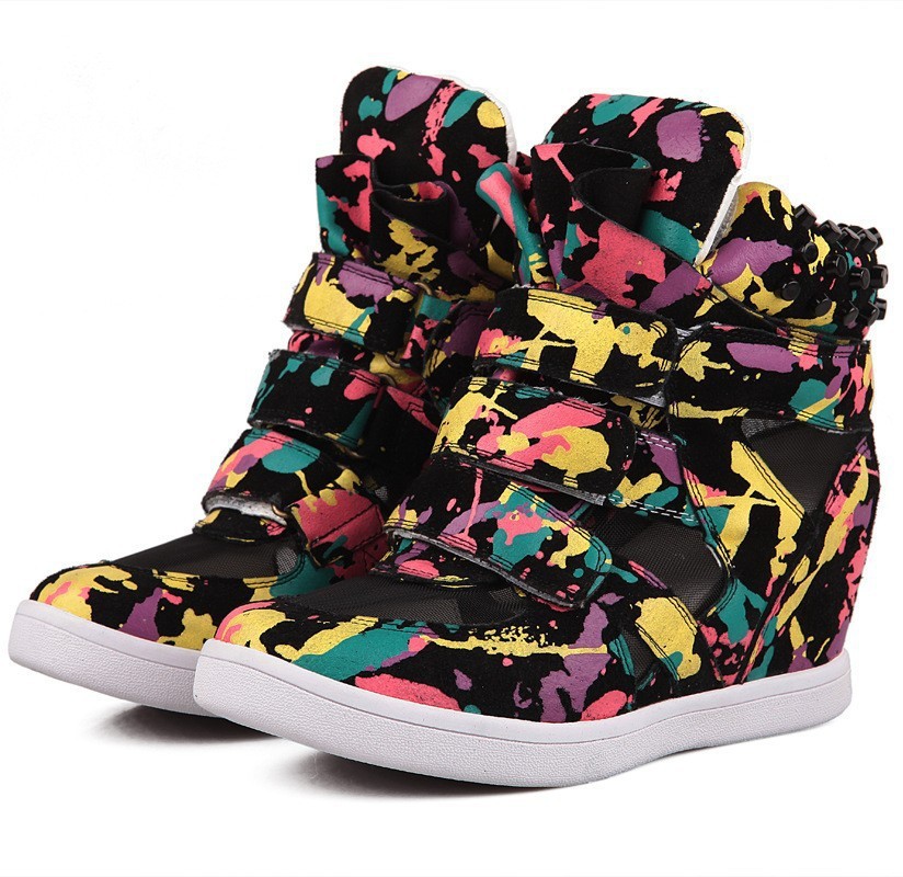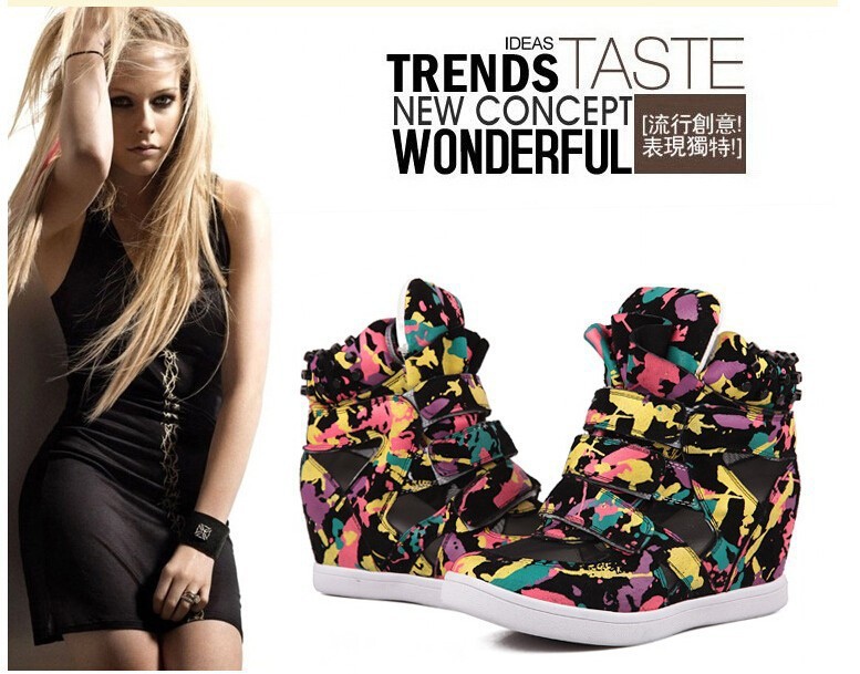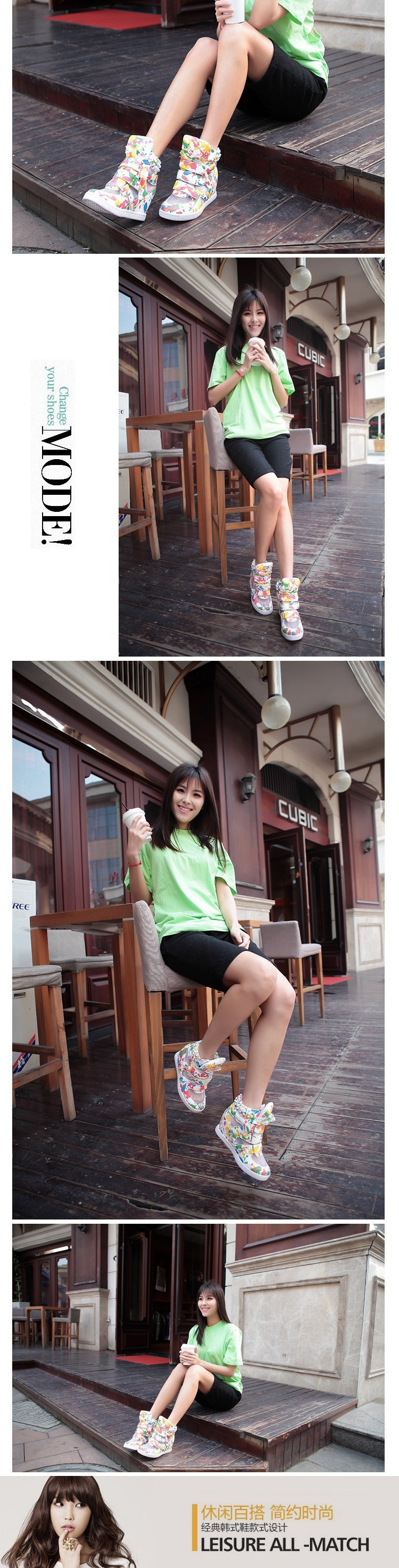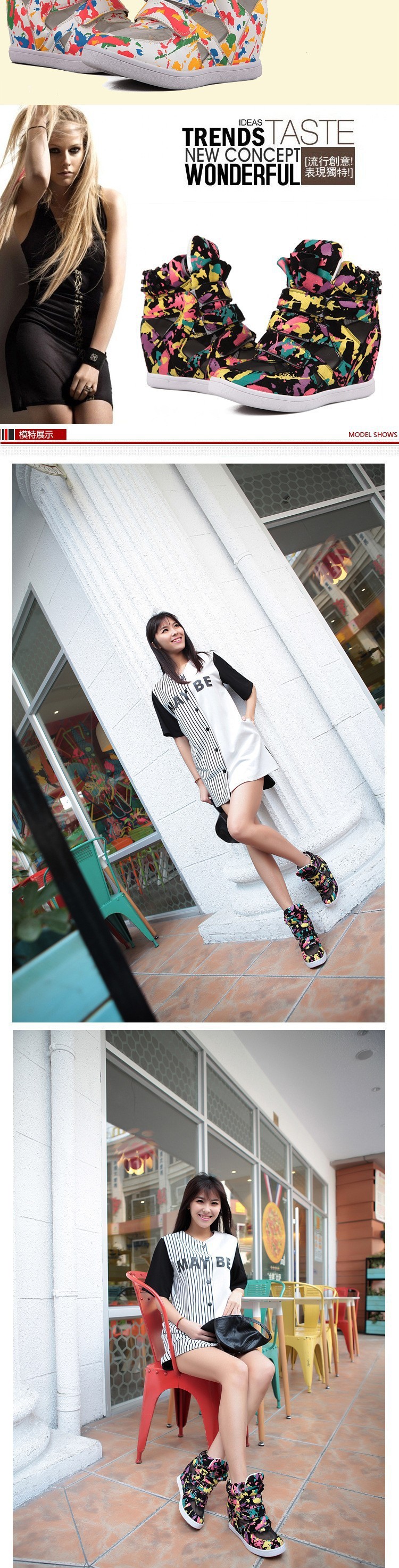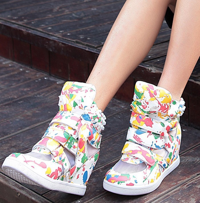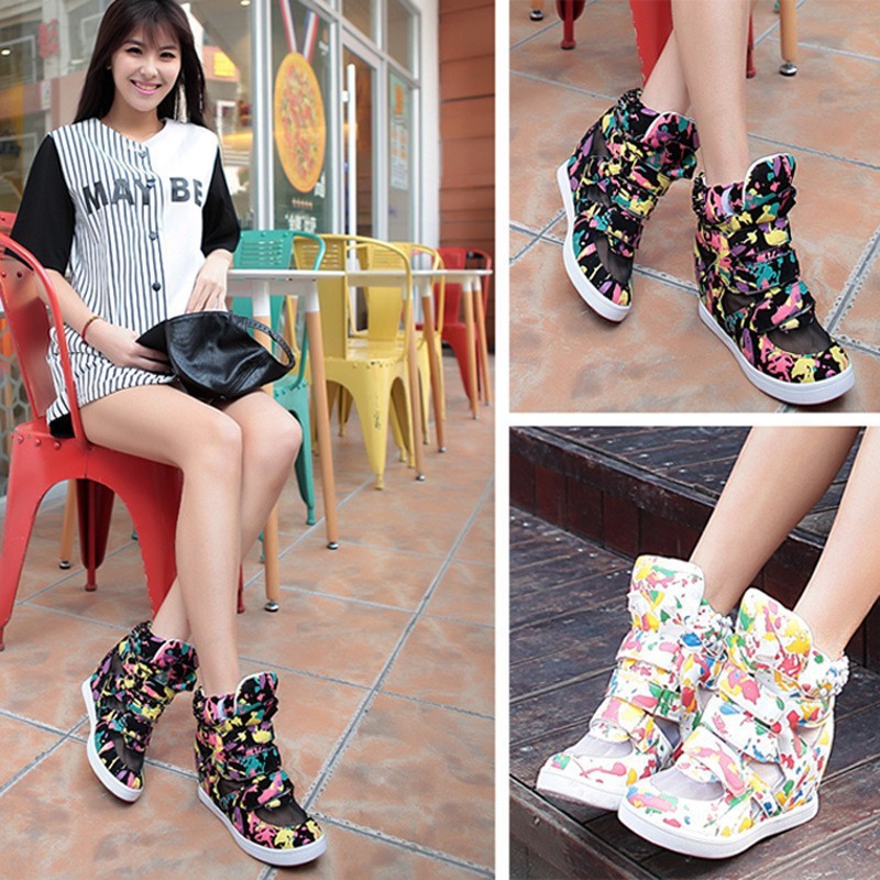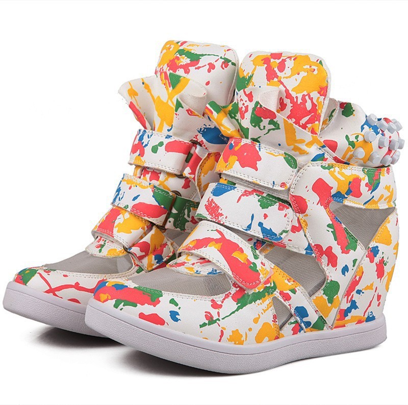 Rivet graffiti net cloth Isabel Marant Genuine Leather high boots Height Increasing Sneakers Fashion girls shoes
