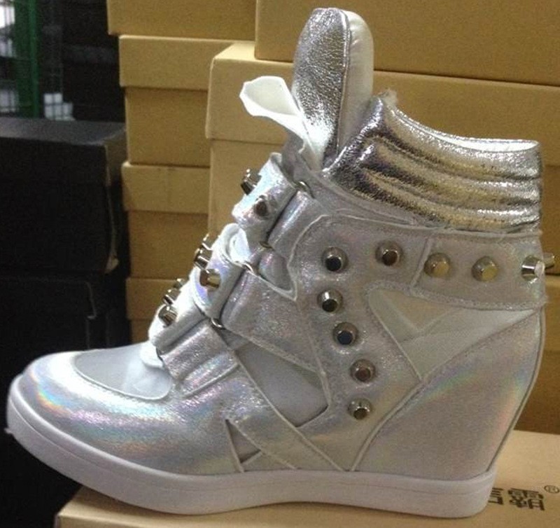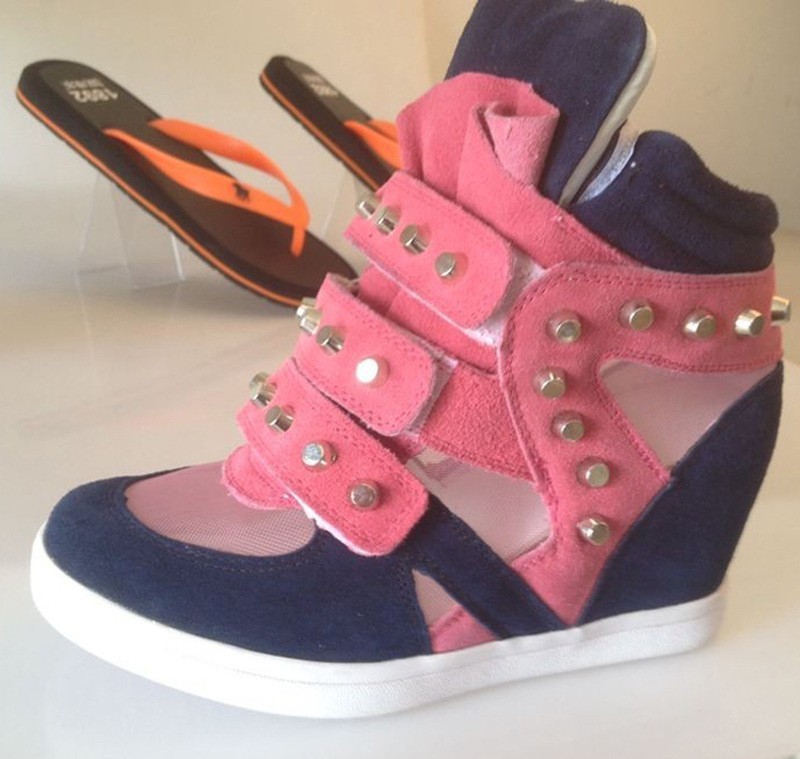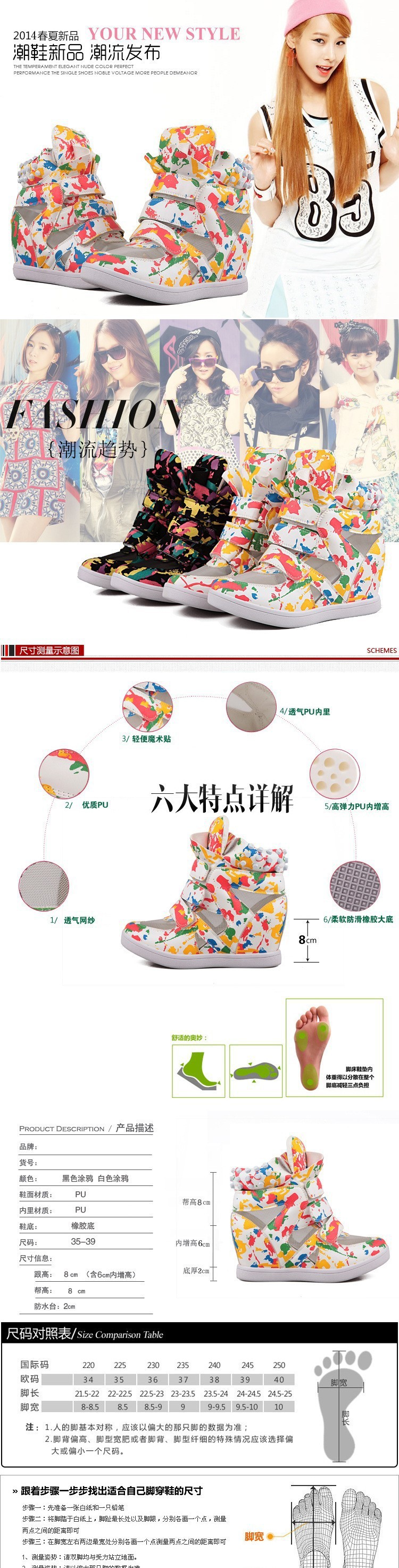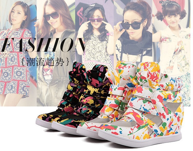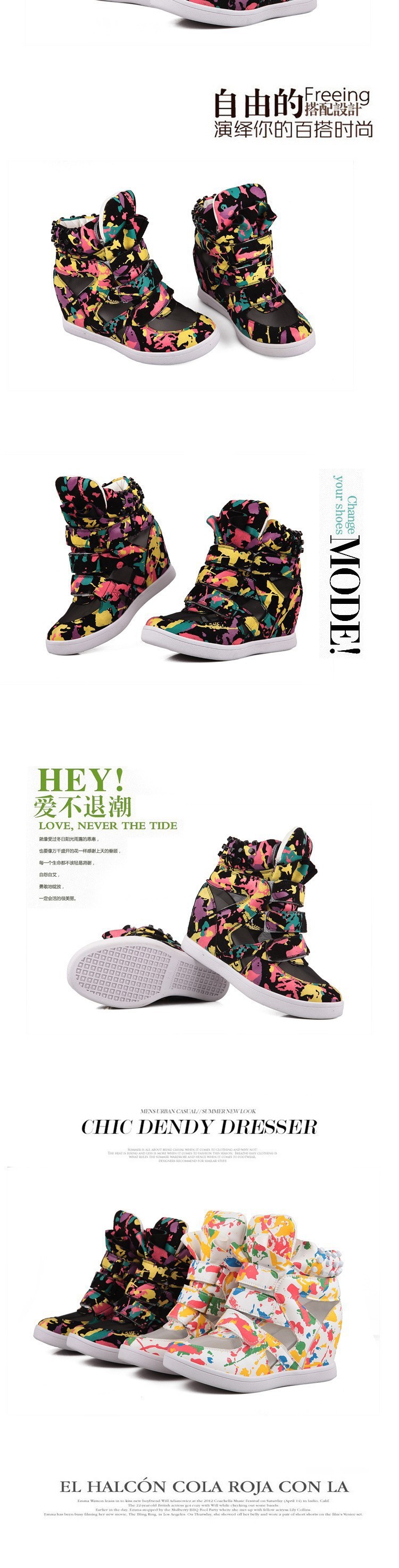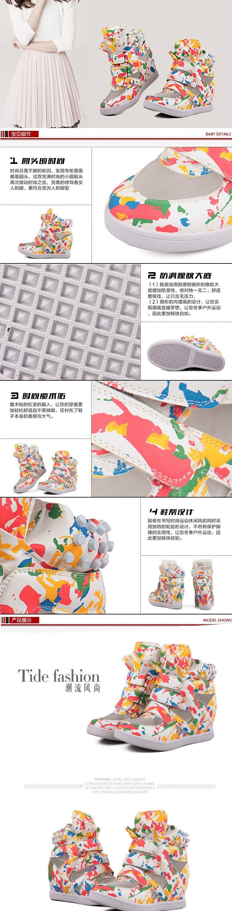 2015 Rivet graffiti net cloth Isabel Marant Genuine Leather high boots Height Increasing Sneakers Fashion girls