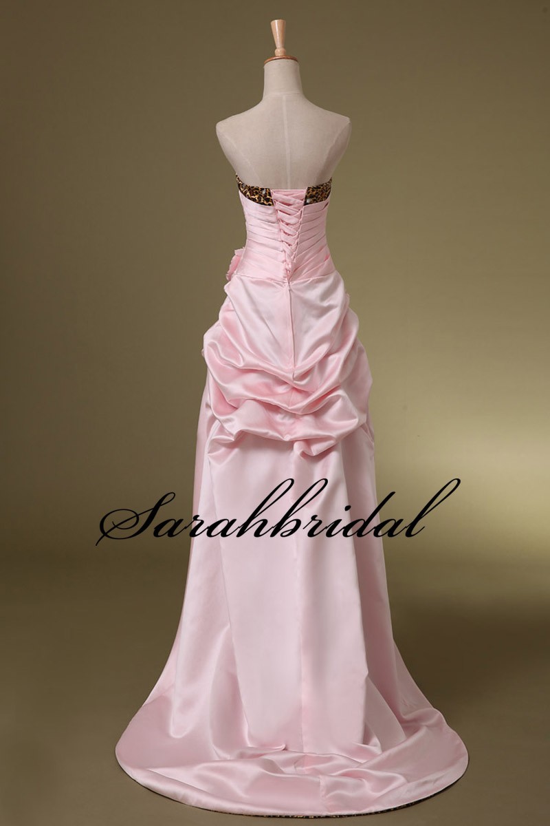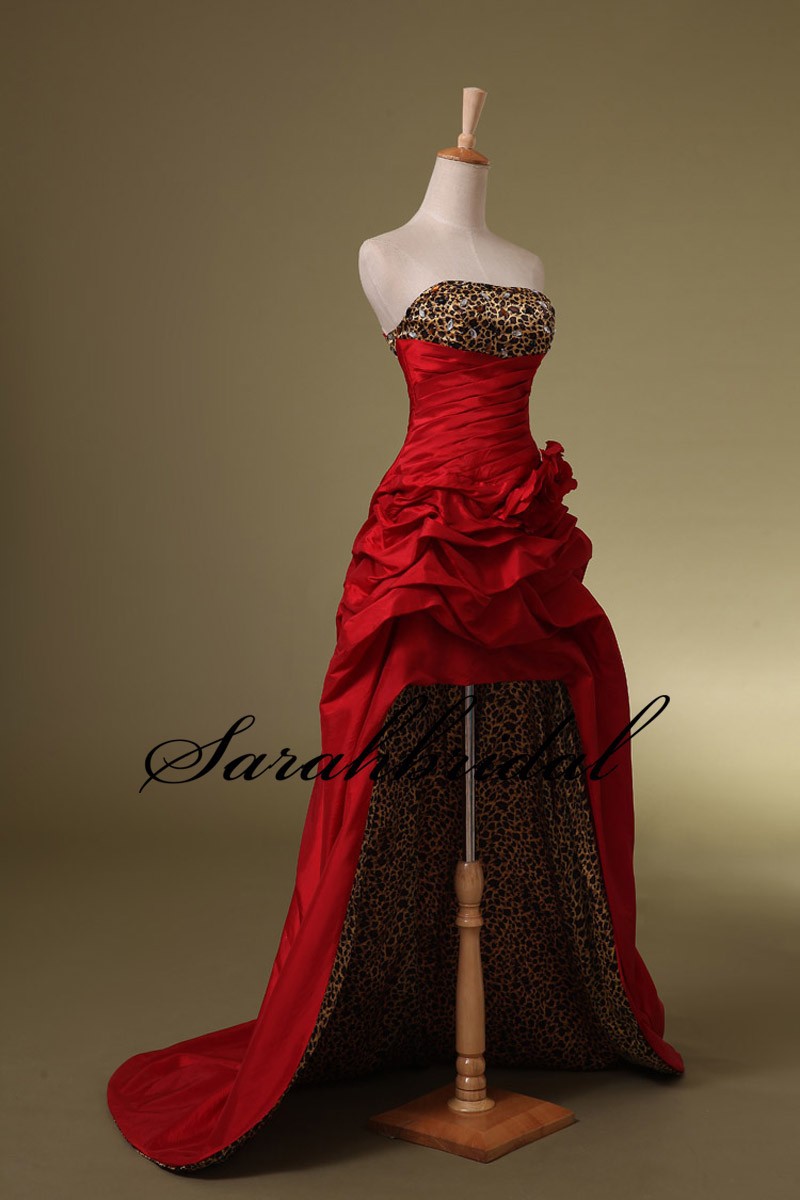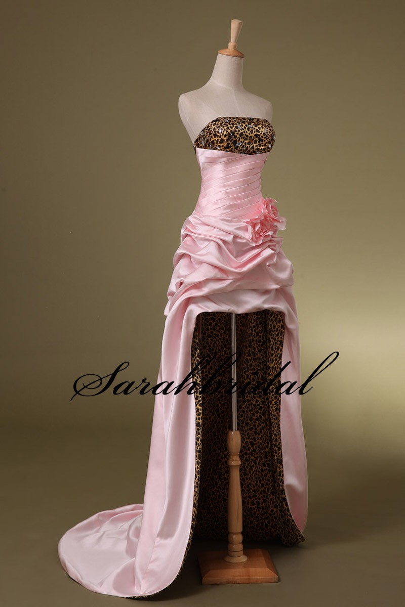 Leopard Strapless High Low Graduation Party Dresses Pleated 2015 New Luxury Crystal Graduation Dresses Hand Made Flower SD070