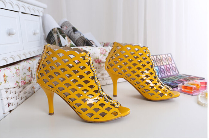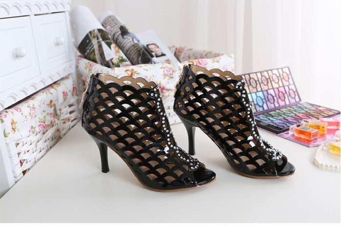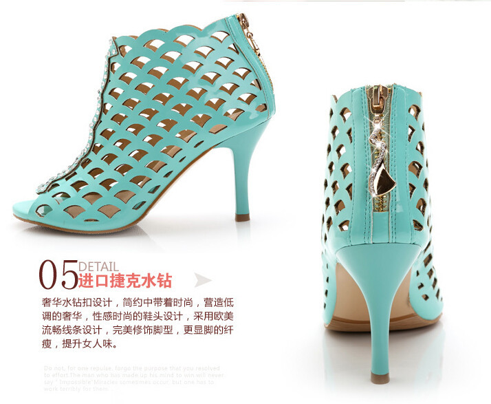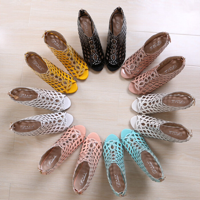 free shipping four color Rhinestone fashion Hollow sexy leather stiletto sandals Roman fish head wedding shoes party shoesT0200