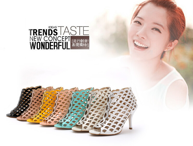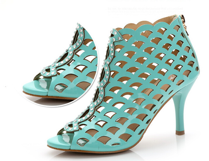 Seven color Rhinestone fashion Hollow sexy leather stiletto sandals Roman fish head wedding shoes party shoes