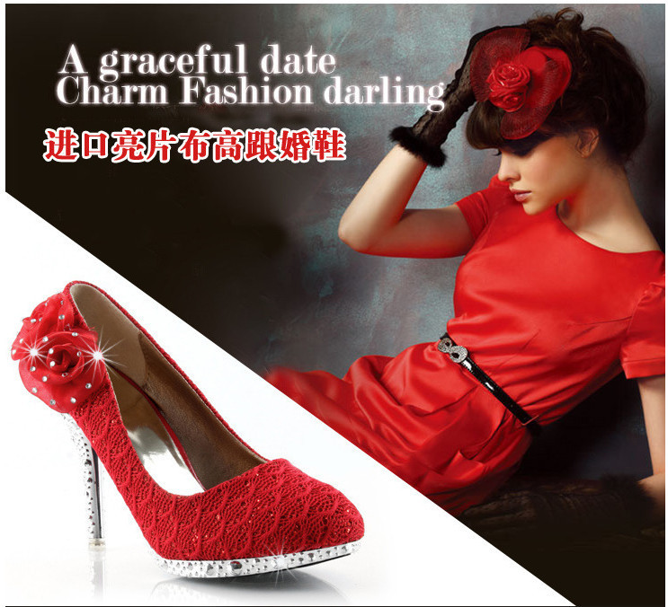 size 35-38 2014 new fashion 9.5cm women high heel wedding shoes women platform pumps rhinestone shoes free shipping
