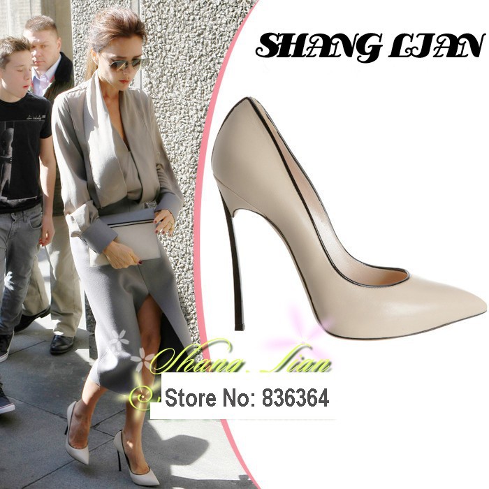 Women pumps Genuine Leather Kim Kardashian Metal Blade High Heels shoes Pointed Toe women high heel