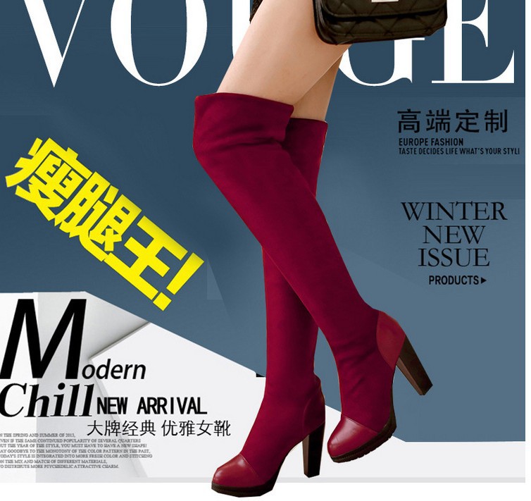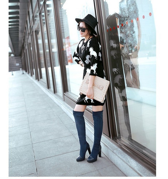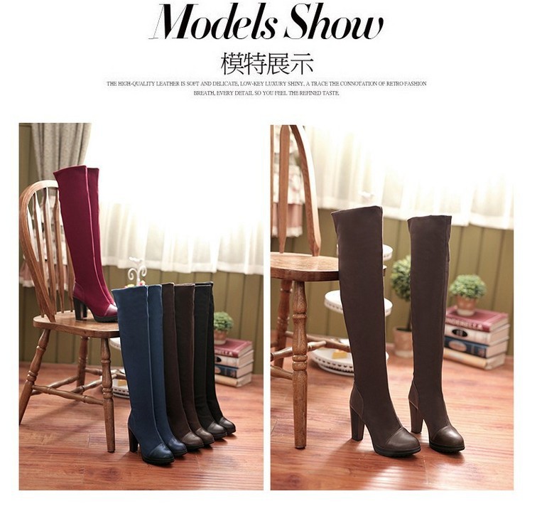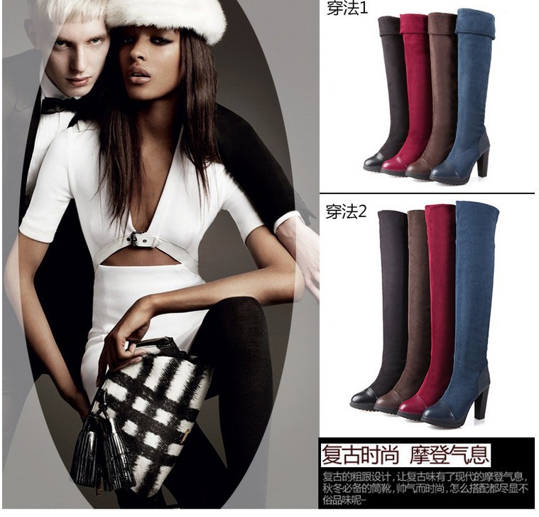 Size34-39 autumn fashion women vintage knight boots 10cm high heel botas winter warm women knee high boots free shipping