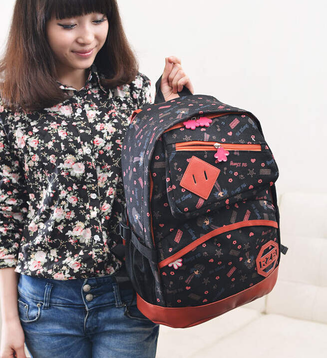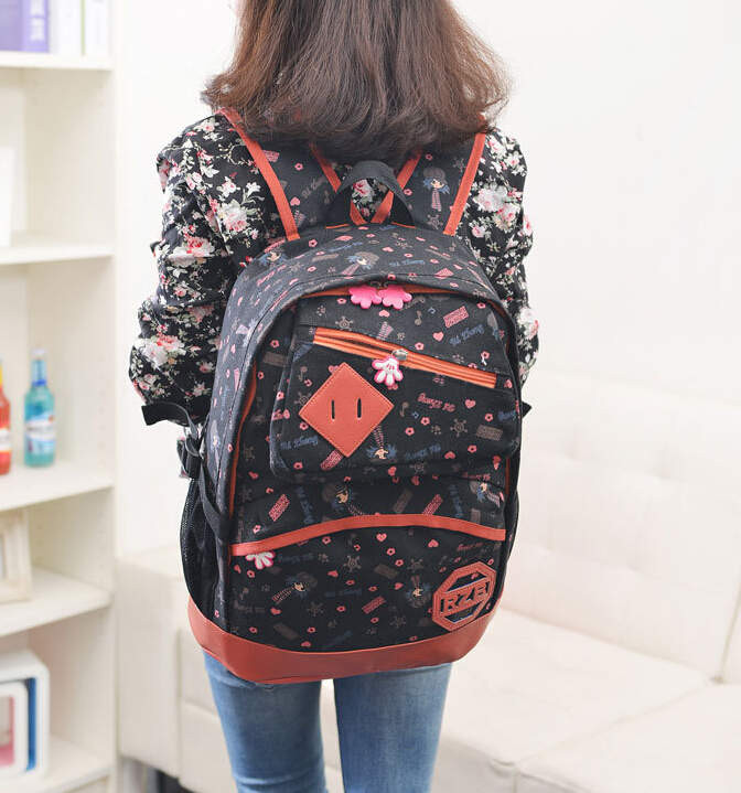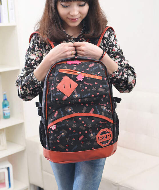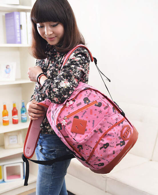 So Hot ! new high school female backpack canvas catoon pattern bag fashion school students sweet elegent backpack