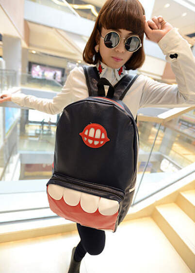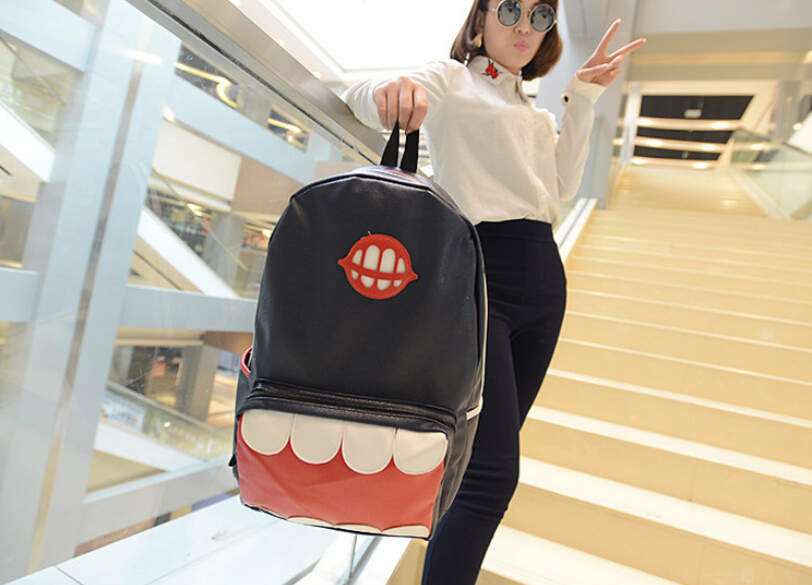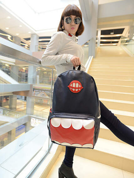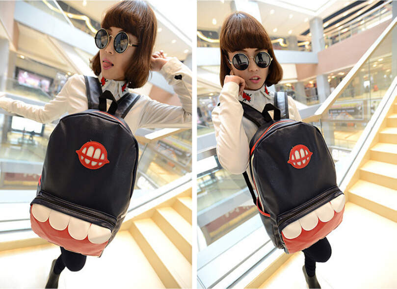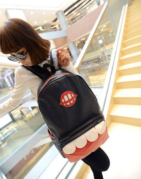 So Hot ! new PU leather high school female backpack catoon pattern bag two colors fashion school students backpack