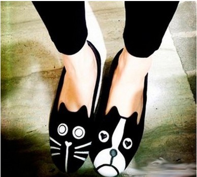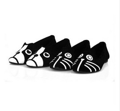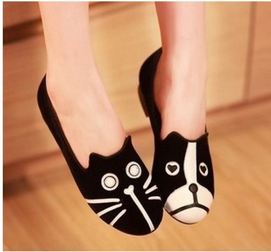 Spring Autumn Europe Loafers Velvet Cat Dog print Loafers Sapatos Femininos Autumn Boots A330