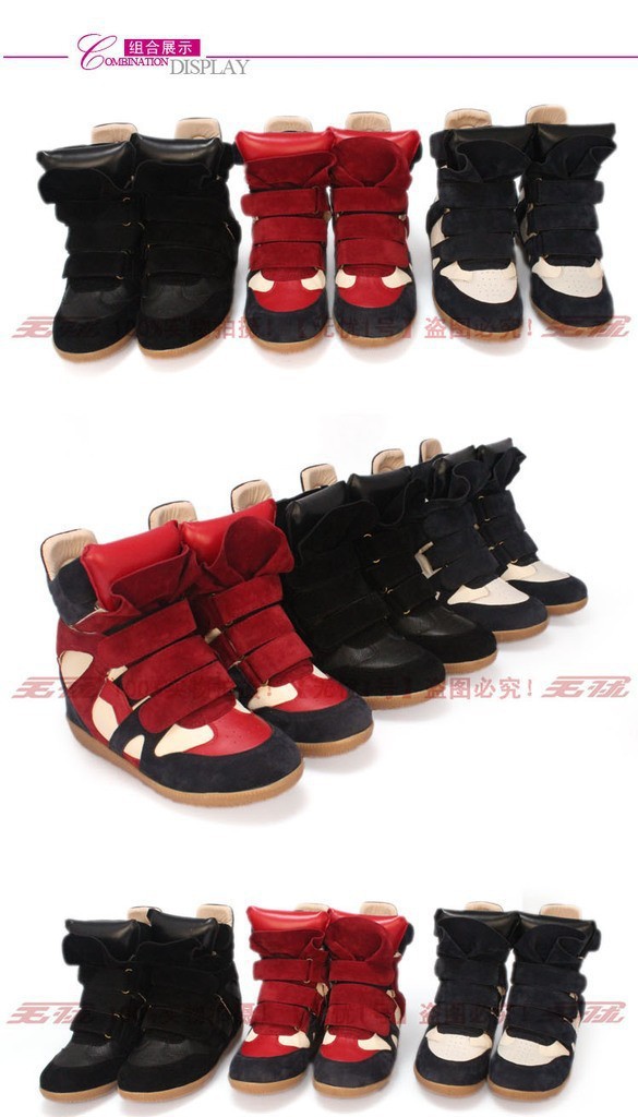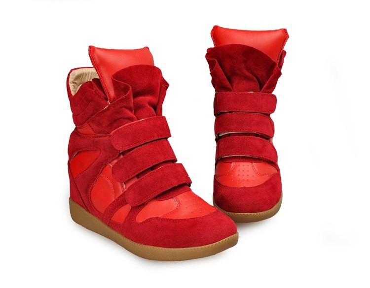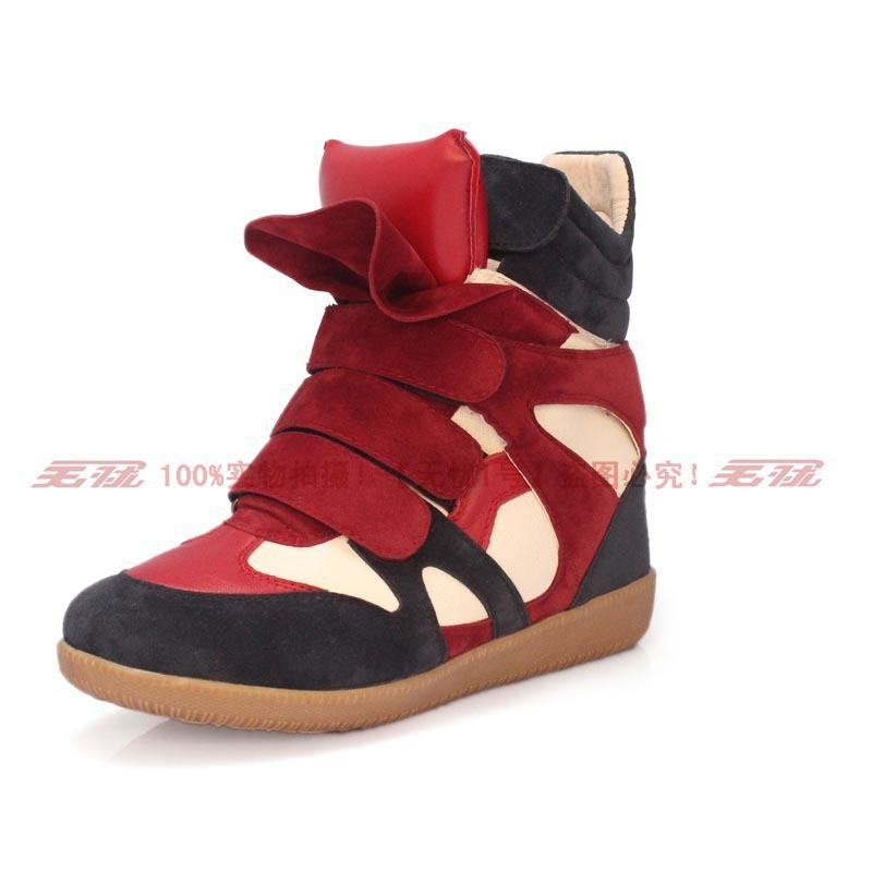Spring Summer Women Genuine Leather Boots Isabel Marant Leather Boots Height Increasing Sneakers shoes size 35-42 Free shipping