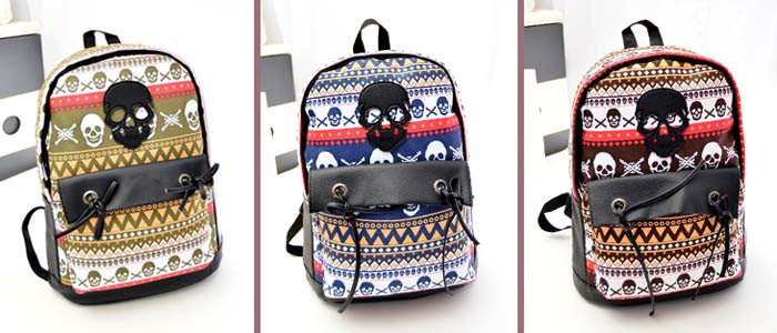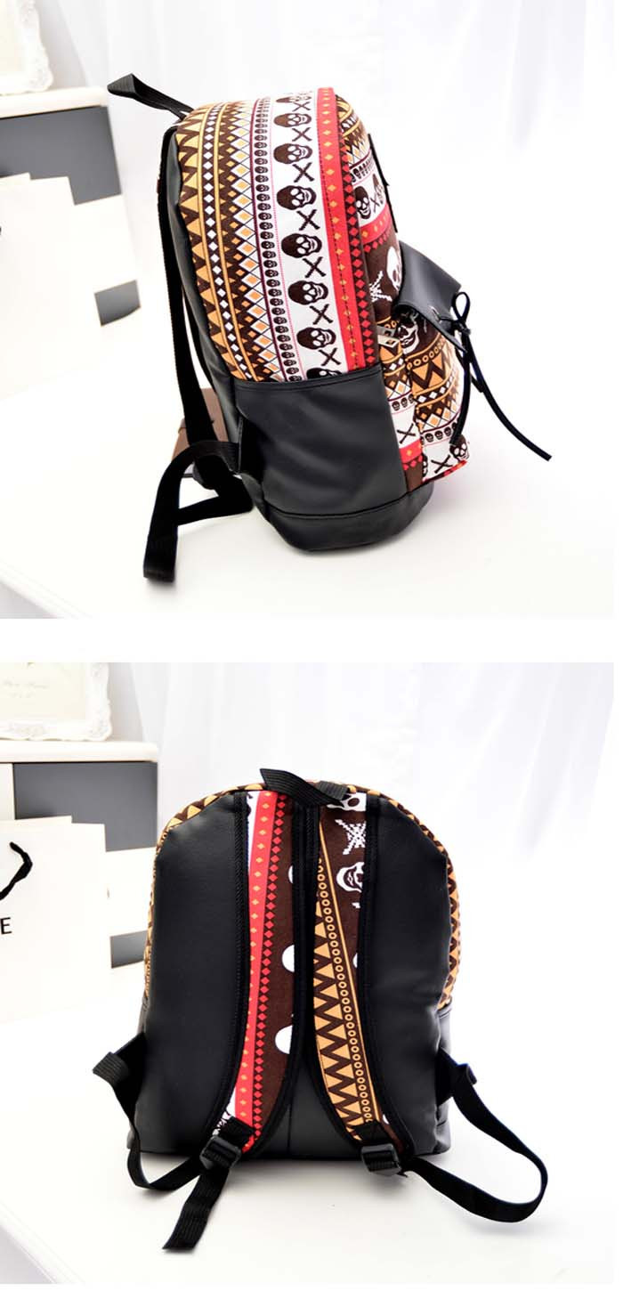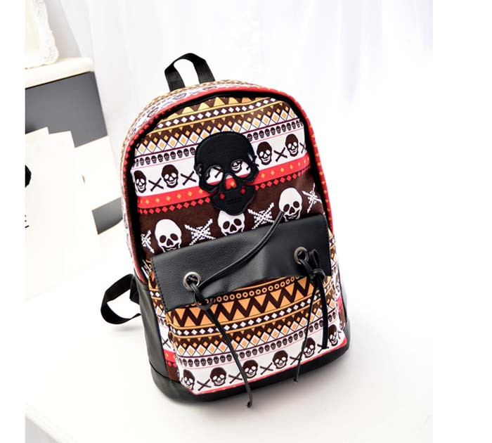 The new suede + PU leather women backpack, retro skull personality schoolbags, casual bags, three-color, 42 * 28 * 5 cm