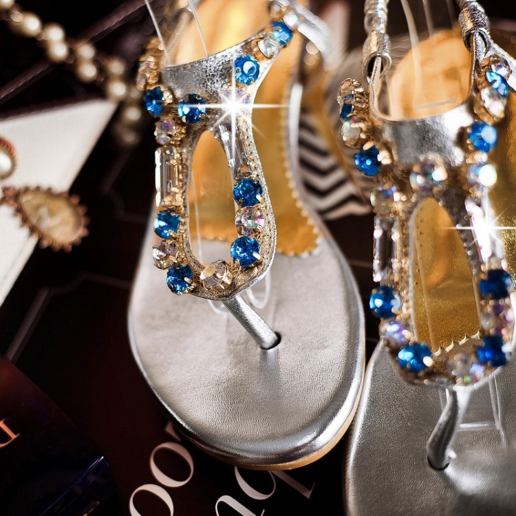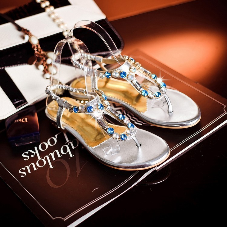 summer flowers herringbone flat shoes fashion bohemian beach stones with flat Roman wedge sandals flip for women shoes