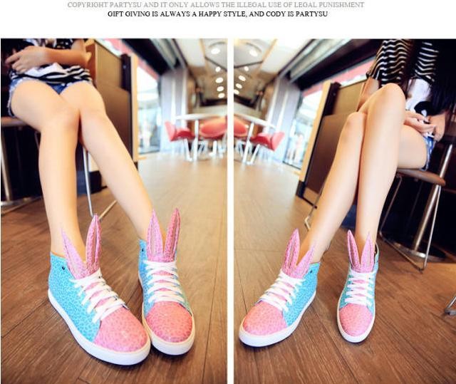 Summer new candy-colored rabbit ears Korean high-top canvas shoes, casual shoes student