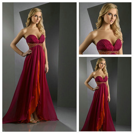 Sweetheart Wine Red Empire Waist Floor Length Cheap Evening Dresses