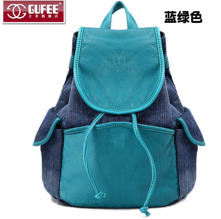 The new double shoulder leisure canvas bags travel female genuine leather decoration bag school students backpack