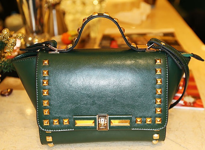 The new European and American women Messenger bag handbag patent leather hand bag rivets 8321