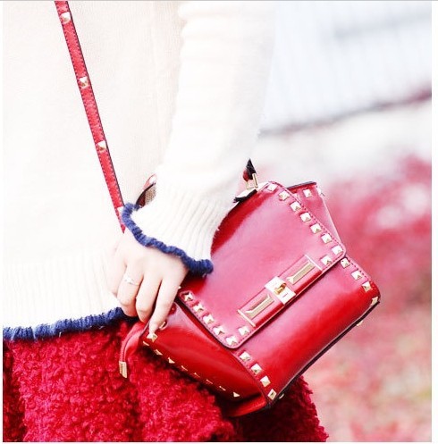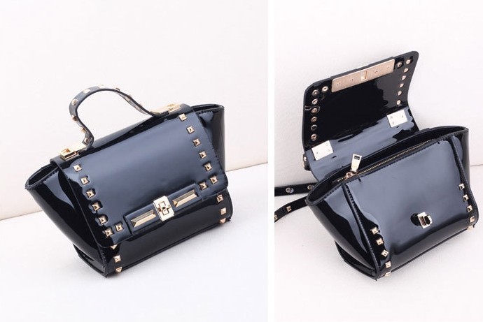 2014 Women’s bag New Fashion Patent Leather Handbags Rivets Famous Brand Shoulder Bags Women Messenger Bags