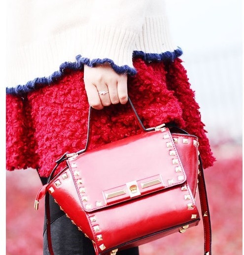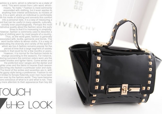 2014 Women s bag New Fashion Patent Leather Handbags Rivets Famous Brand Shoulder Bags Women Messenger