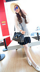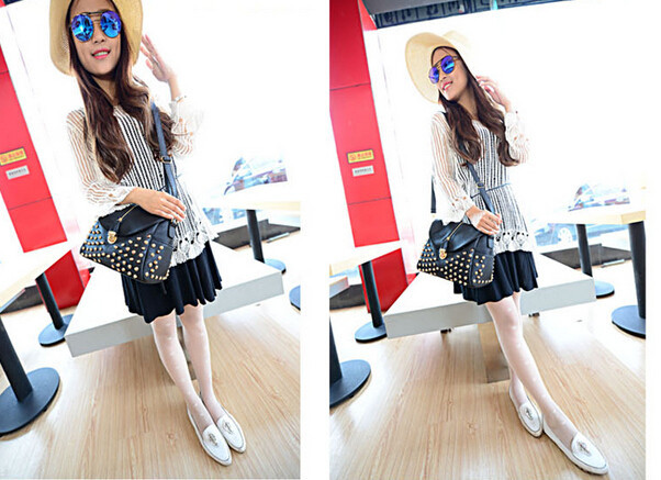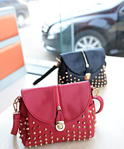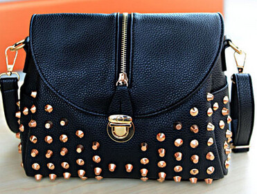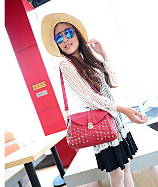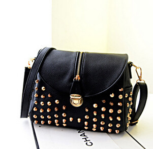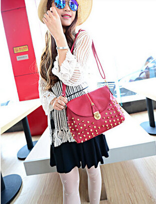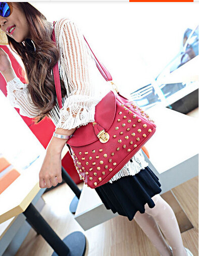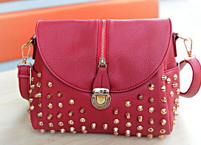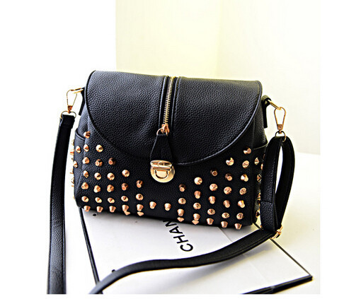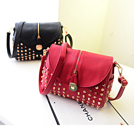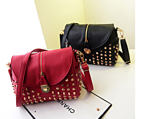The new leisure bag shoulder bag temperament fashion handbags bucket clamshell zipper rivets Messenger Bag