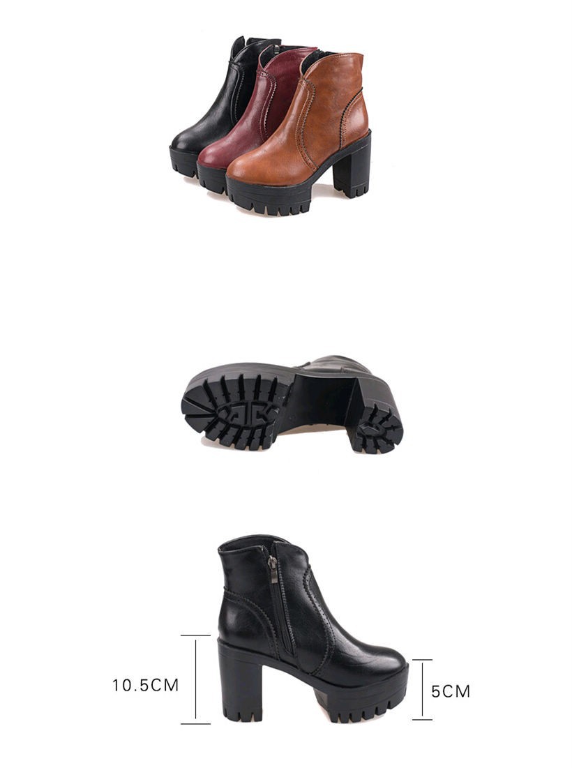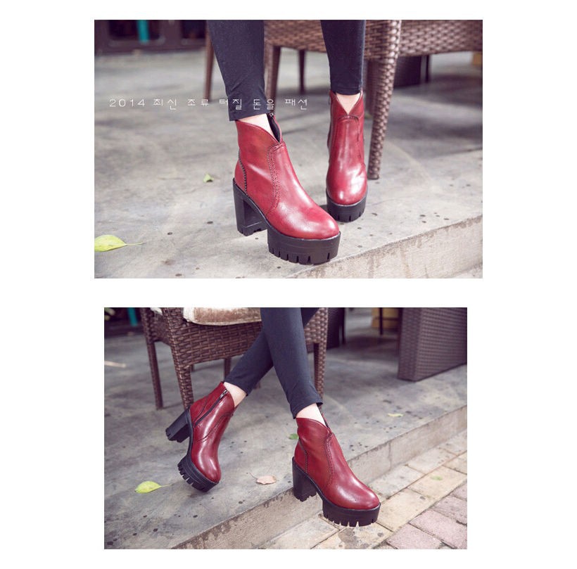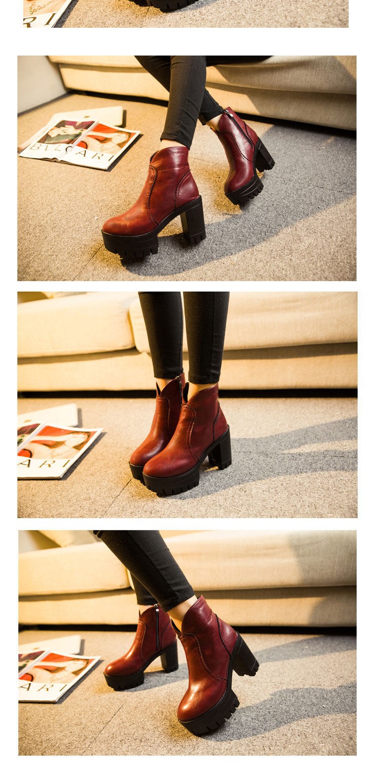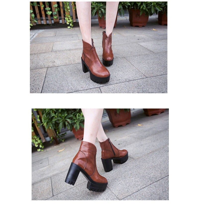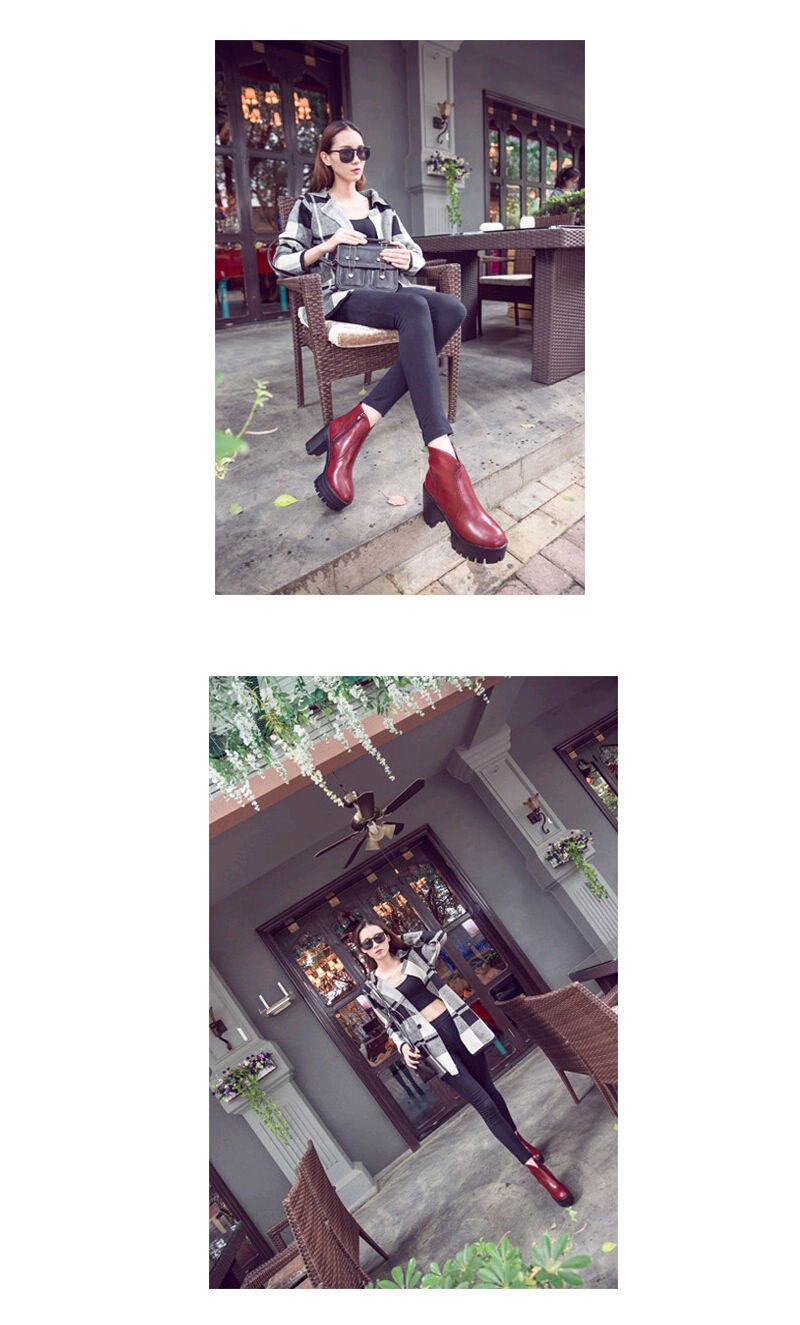 Trend autumn high heels fashion Top quality Genuine leather boots women Punk platform boots female ankle boots Wine Red Brown