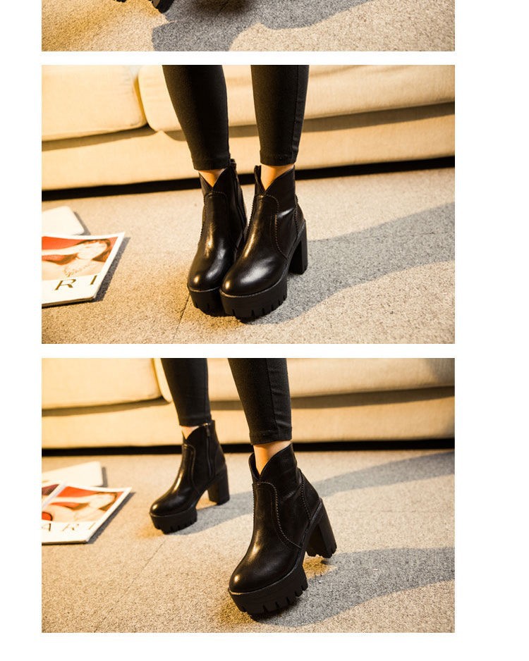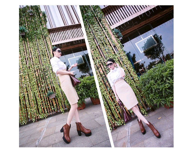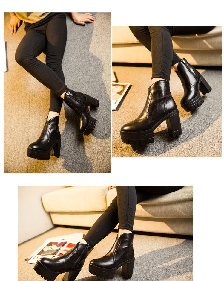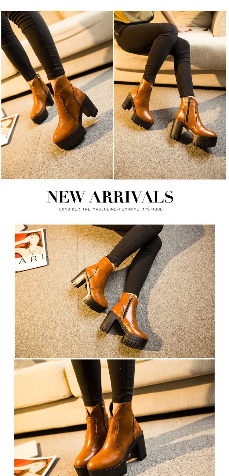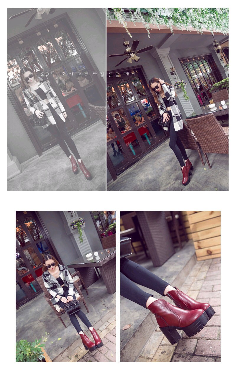 Trend autumn high heels fashion Top quality Genuine leather boots women Punk platform boots female ankle boots Wine Red Brown