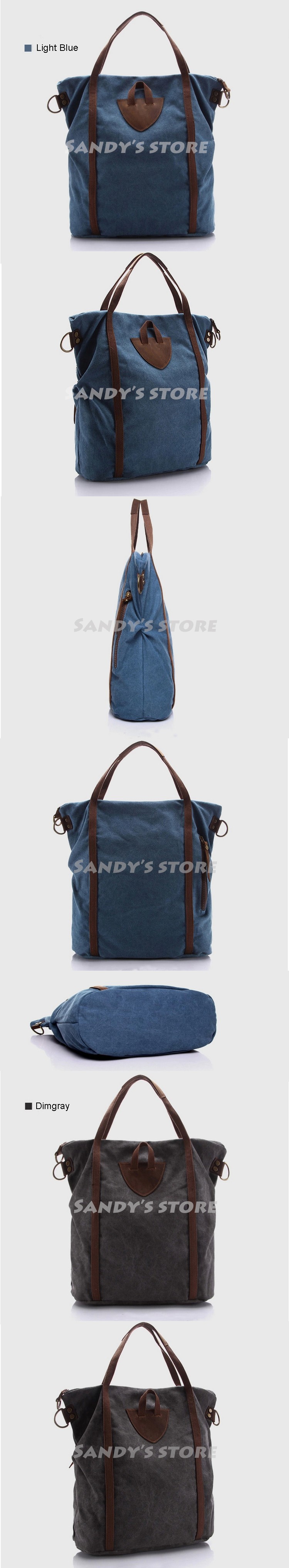 Washed Canvas Modern Leather Big Handbag Casual Special Daily Handles Bag Blue Dimgray Messenger Tote Beach Book Crossbody Bag
