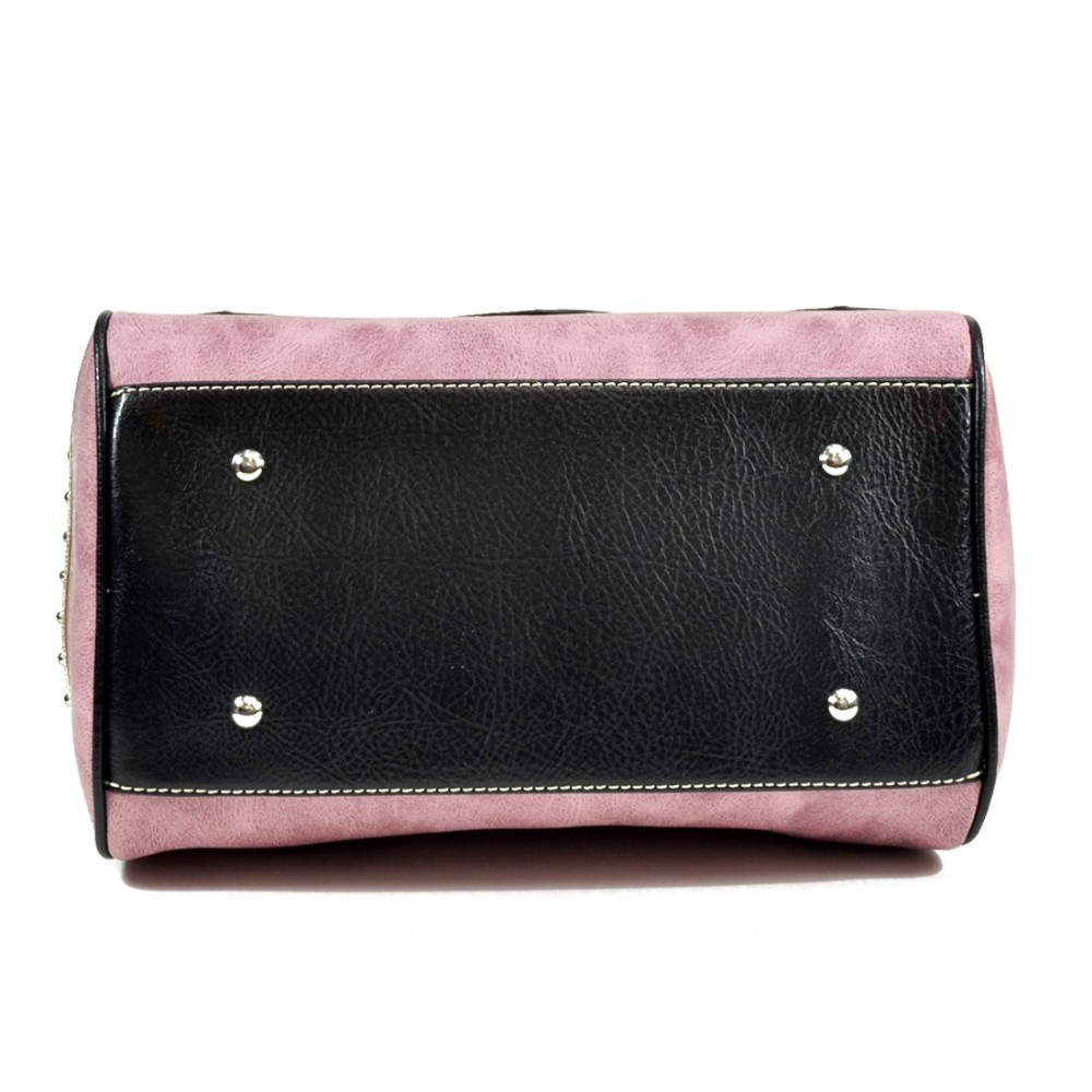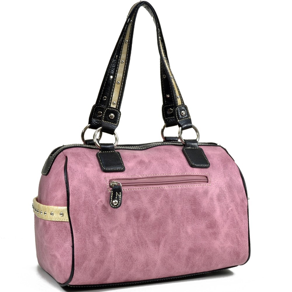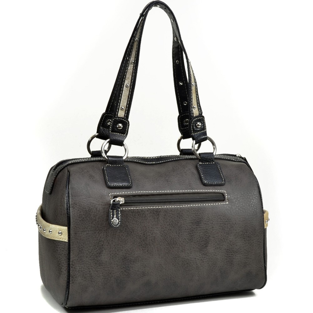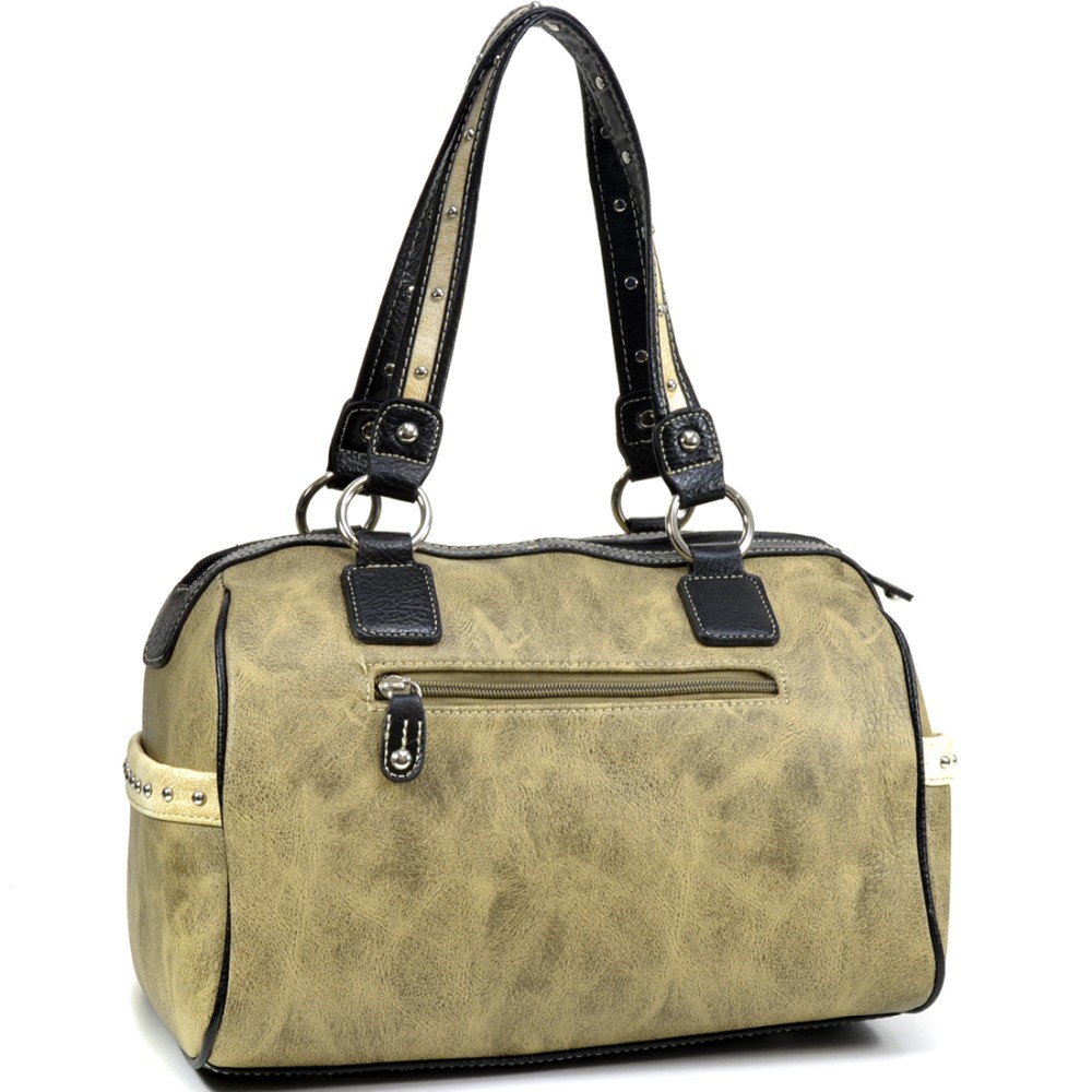 Fierce yet elegant, this one-of-a-kind bag is perfect for all your fashion and storage needs. Featuring distressed faux leather and bold cross and rhinestone accents, this satchel bag is perfect for adding flair to your outfit a-kind satchel bag features bold leopard accents and luxurious gold accented hardware. Transform this lovely bag into a cross-body bag easily with the removable shoulder strap.