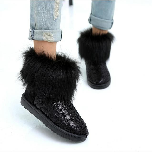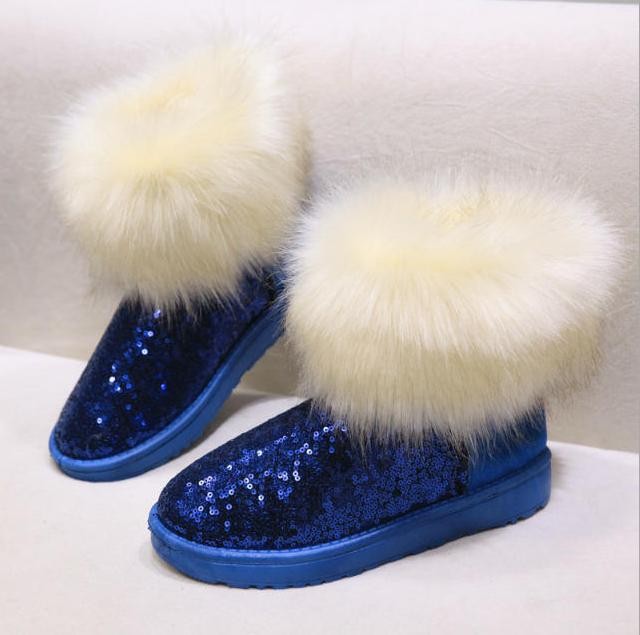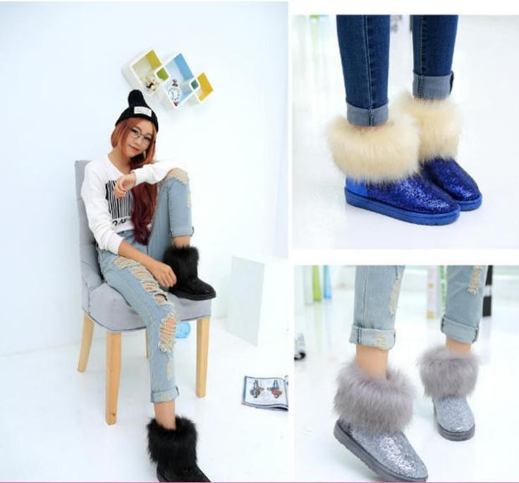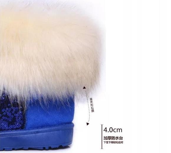 Wholesale 2014 season new women snow boots fox fur boots warm thick crust waterproof sequins snow shoes free shipping