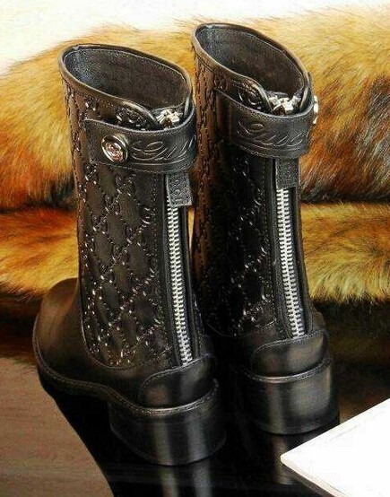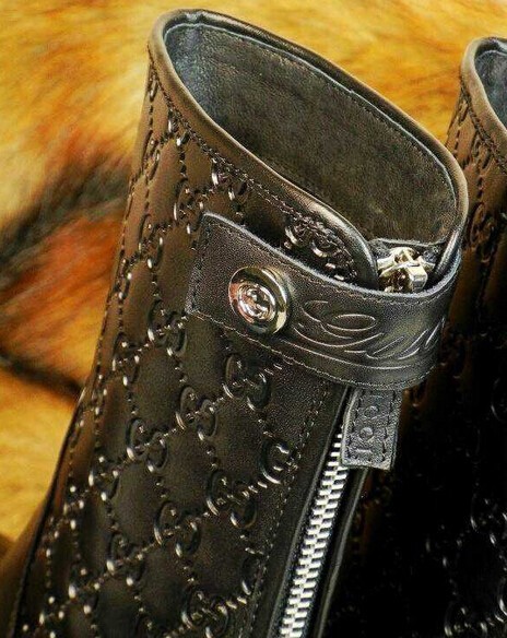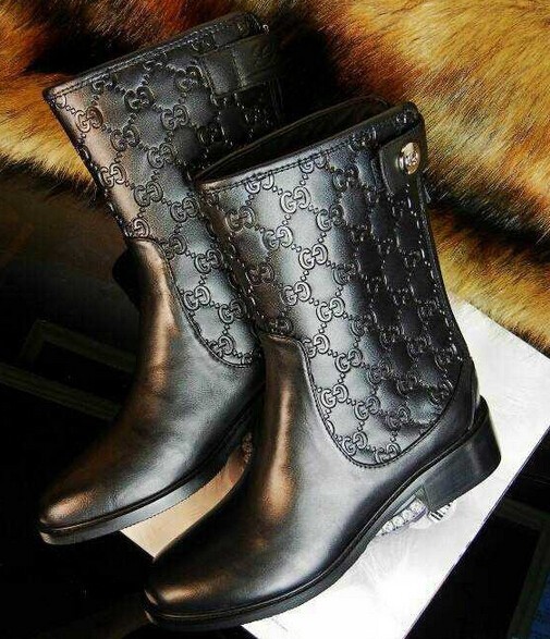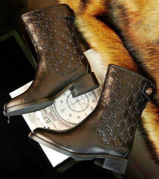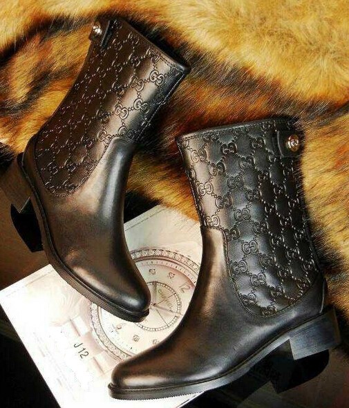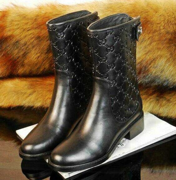 Wholesales Euro Style Kucci Style Genuine Leather Autumn Boots Women Boots Lady Mid Calf Boots Printing Martin Boots