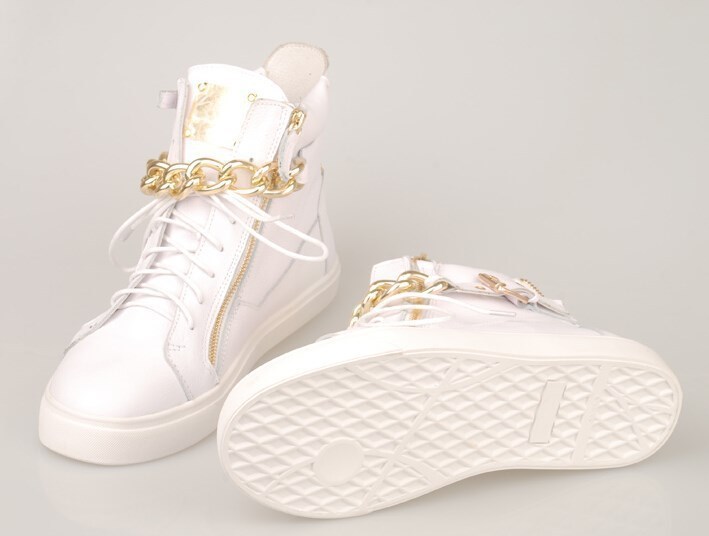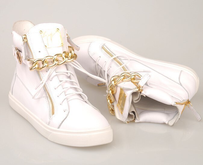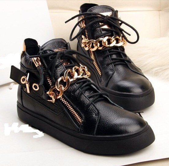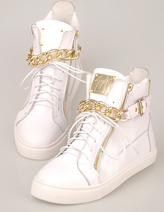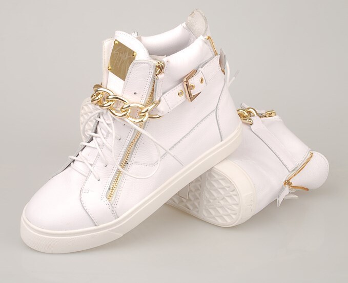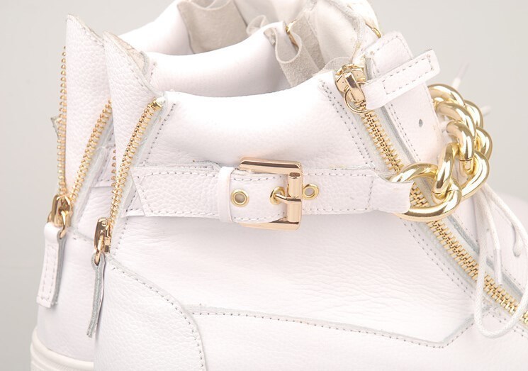 Wholesales GZ 100% Genuine Leather Height Increasing With Metal Chain High Top Shoes Men Women Unisex Fahsion Sneakers