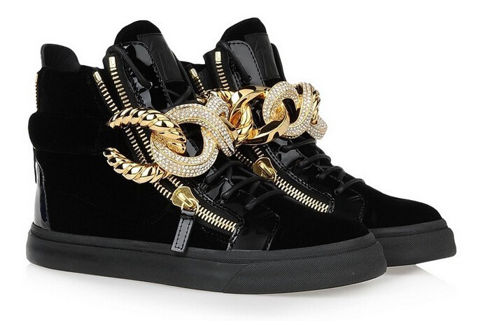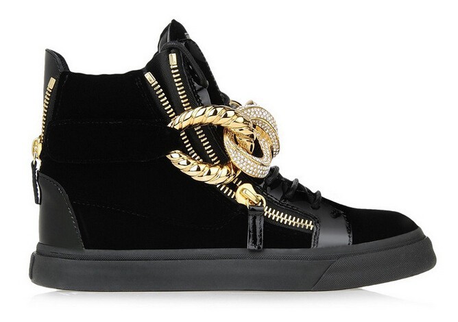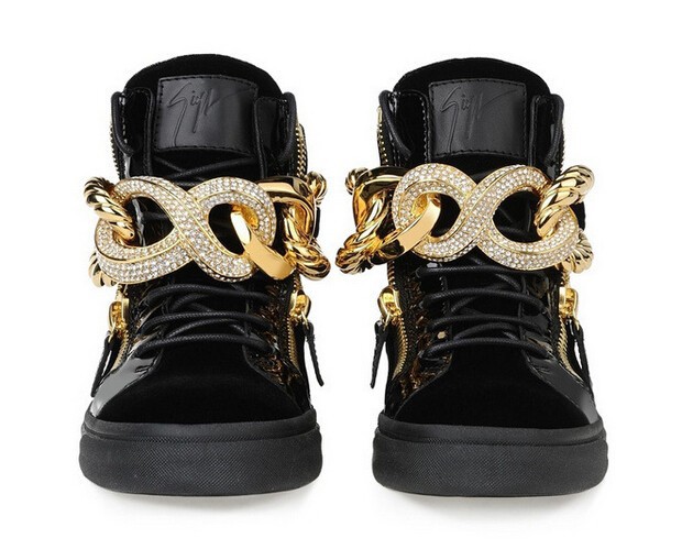 Wholesales GZ 100% Genuine Leather With Metal Chain Rhinestones Zip Elastic Band Shoes Men And Women Unisex Fahsion Sneakers