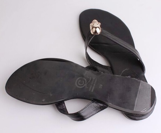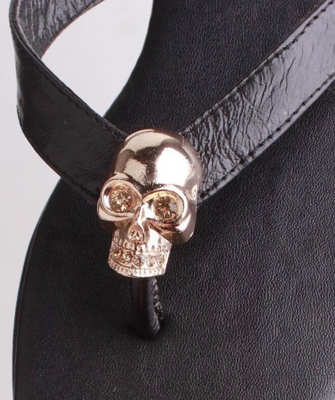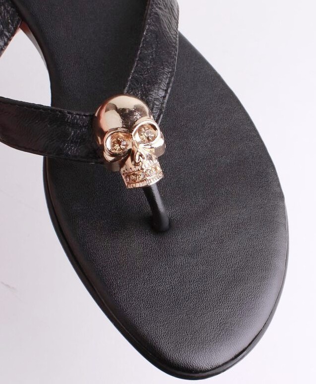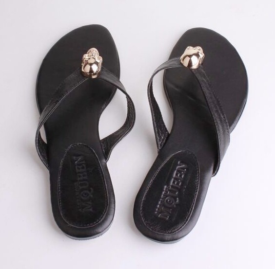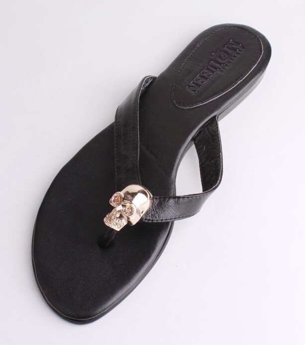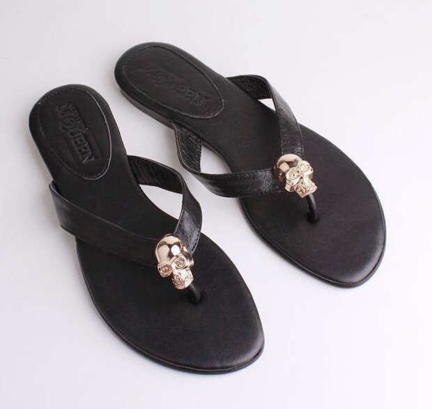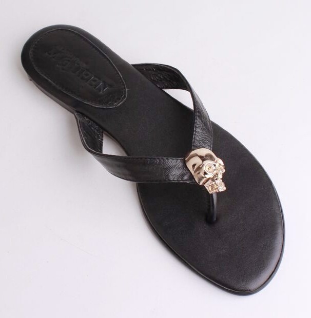 Wholesales Mqueen Genuine Leather Women Sandals With Metal Ghost Head Lady Sandals Flip Flops Fashion Sandals