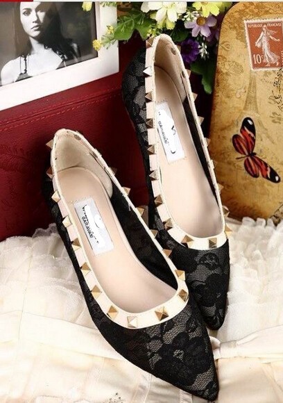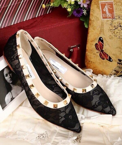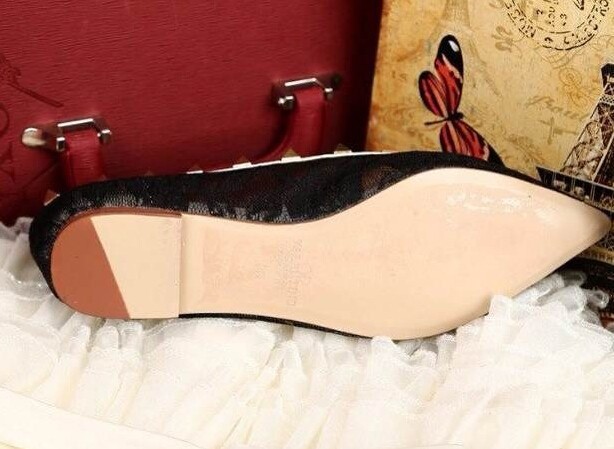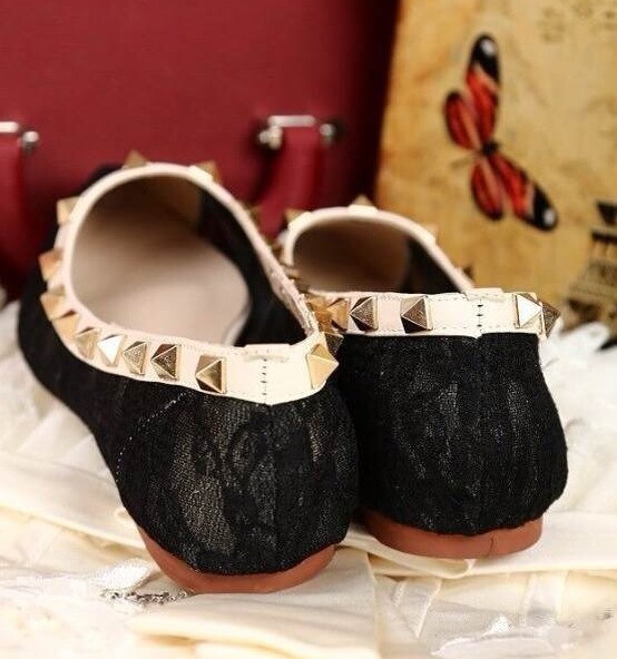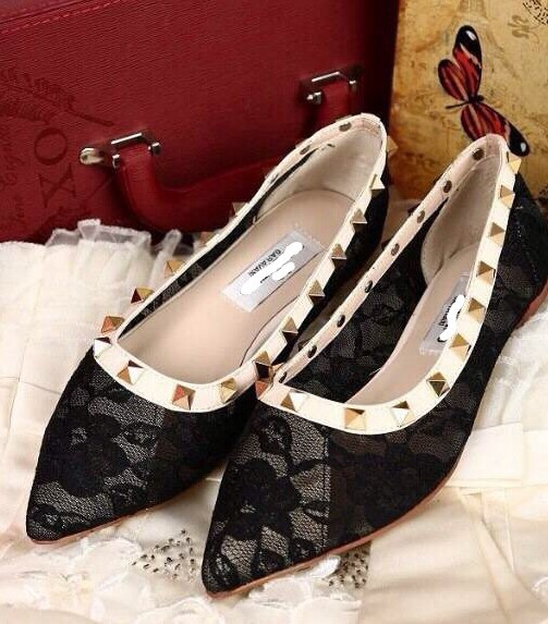 Wholesales V Home Valentine Style Lace Surface Women Flats With Rivet Slip On Pointed Toe Fashion