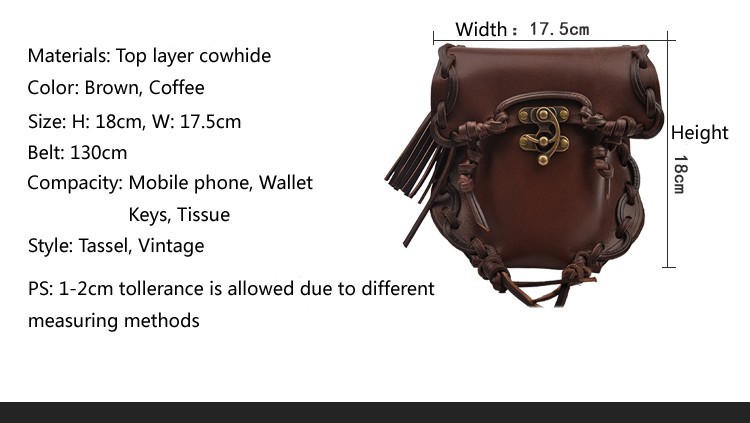 Women 100% top layer cowhide genuine leather shoulder tassel messenger bag top quality new arrivals drop shipping PB101
