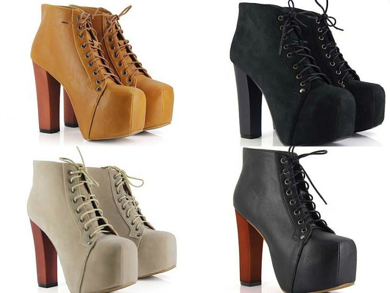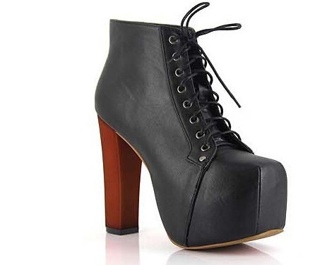 2015 Women Ankle Motorcycle Boots Platform High Heels For Women Lace Up Martin Boots Autumn Winter