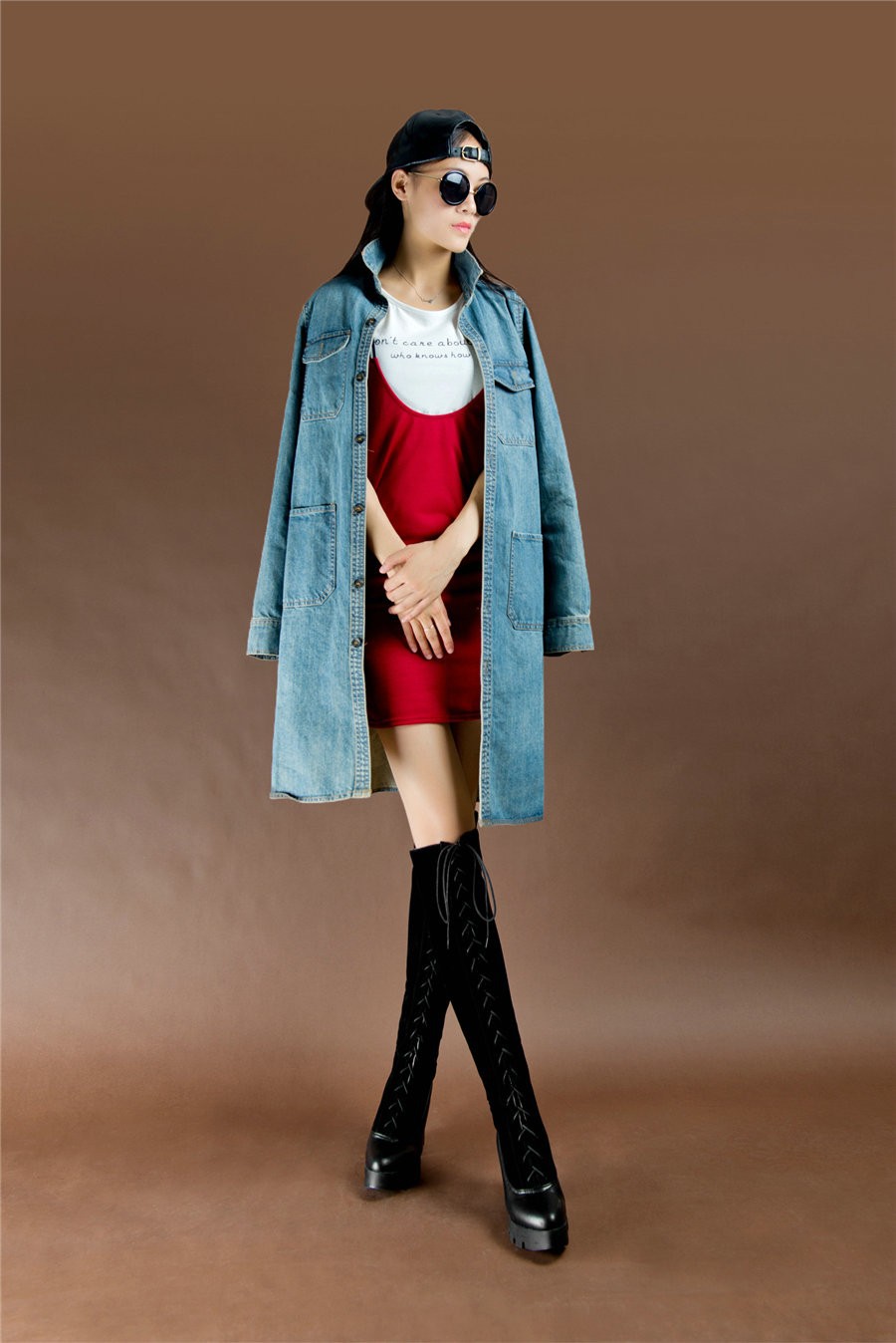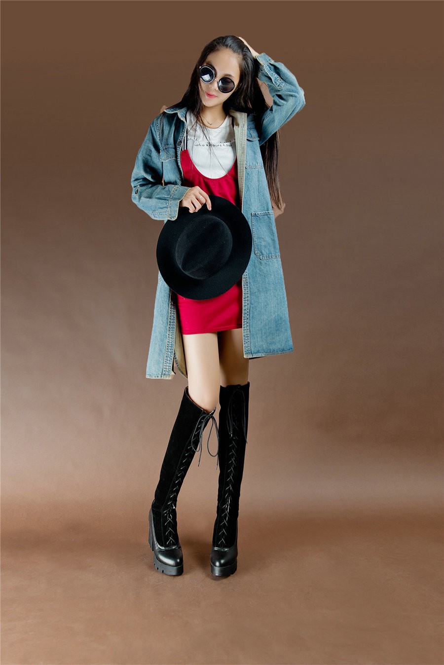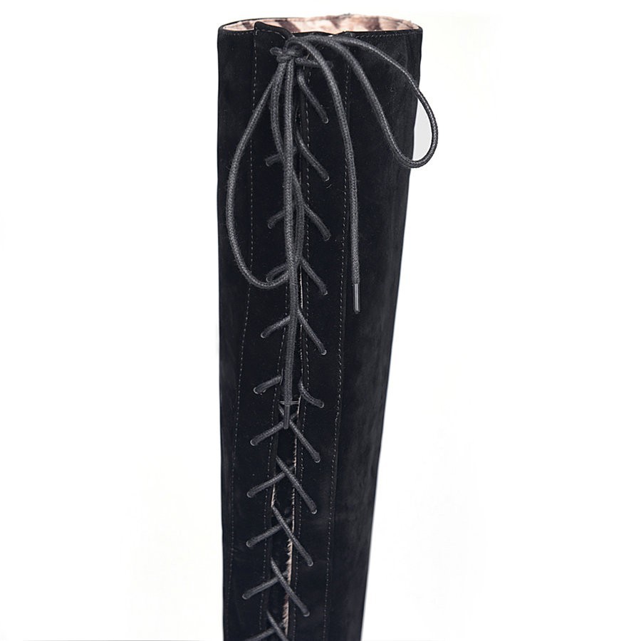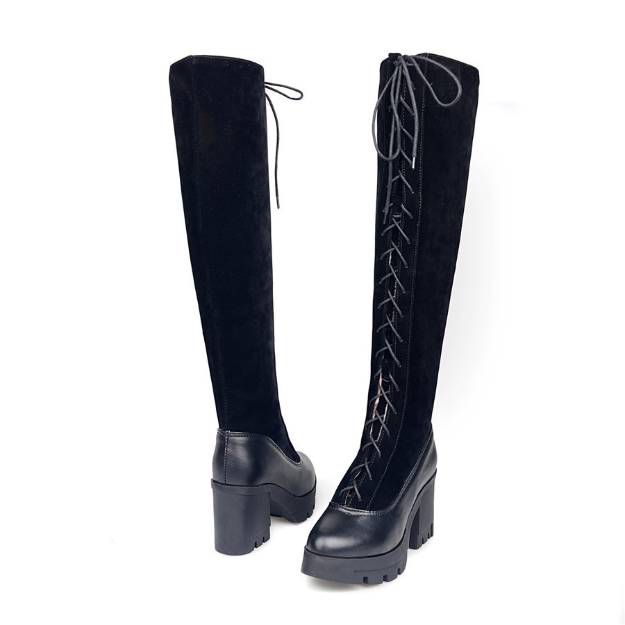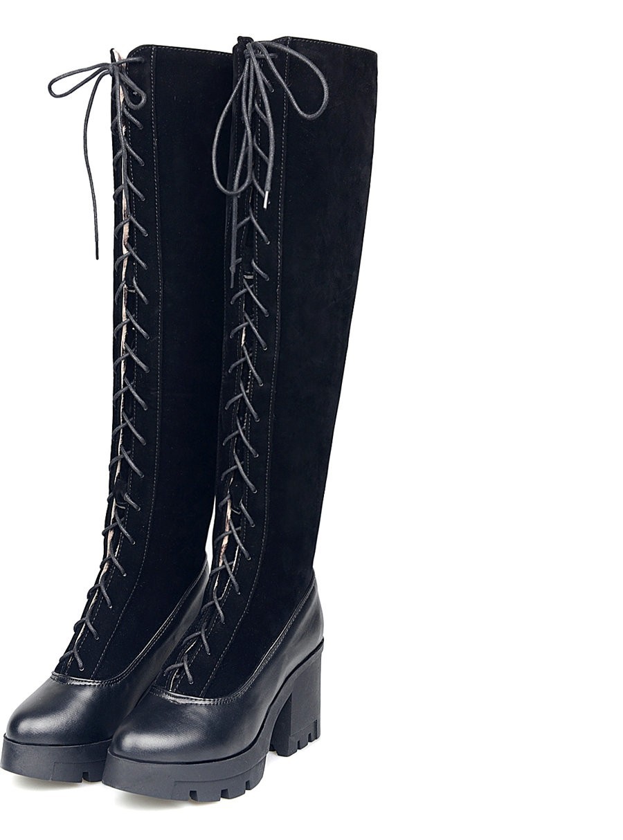 Women Lace Up Knee High Boots Chunky Block High Heel Platform Punk Goth Creepers