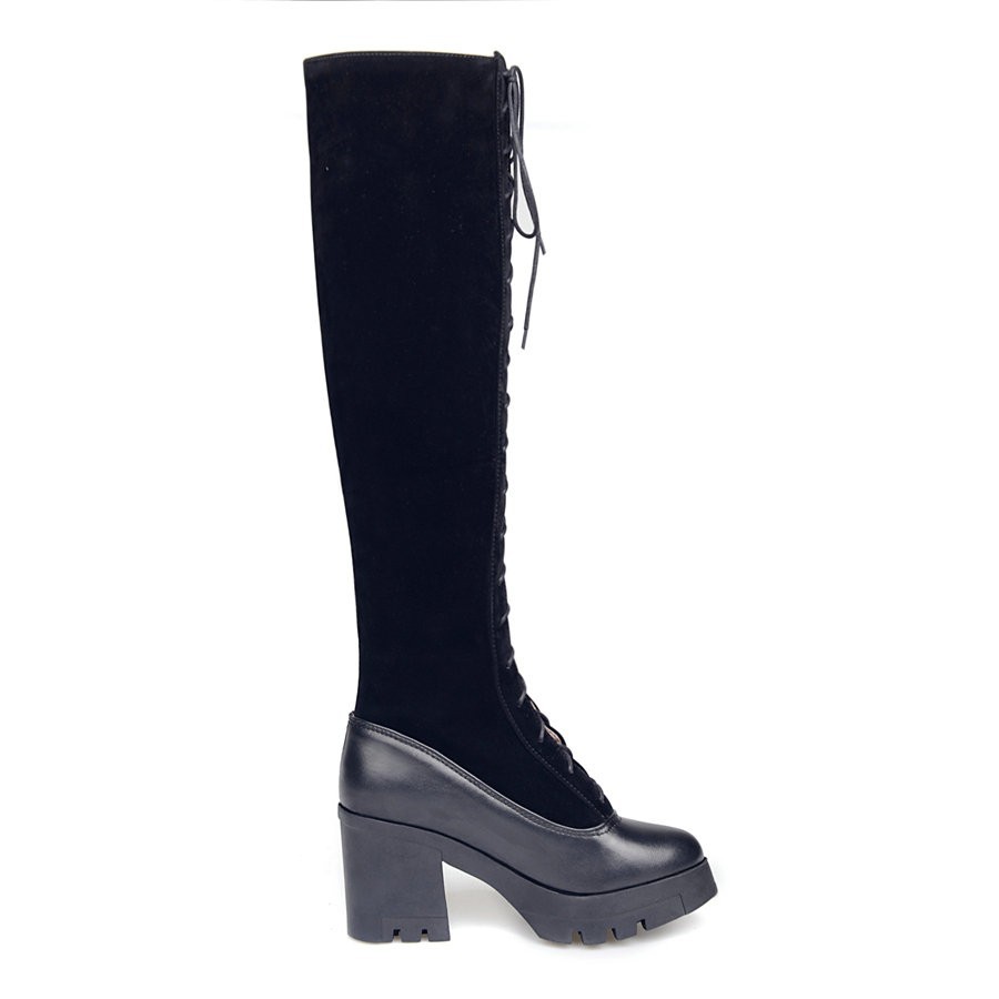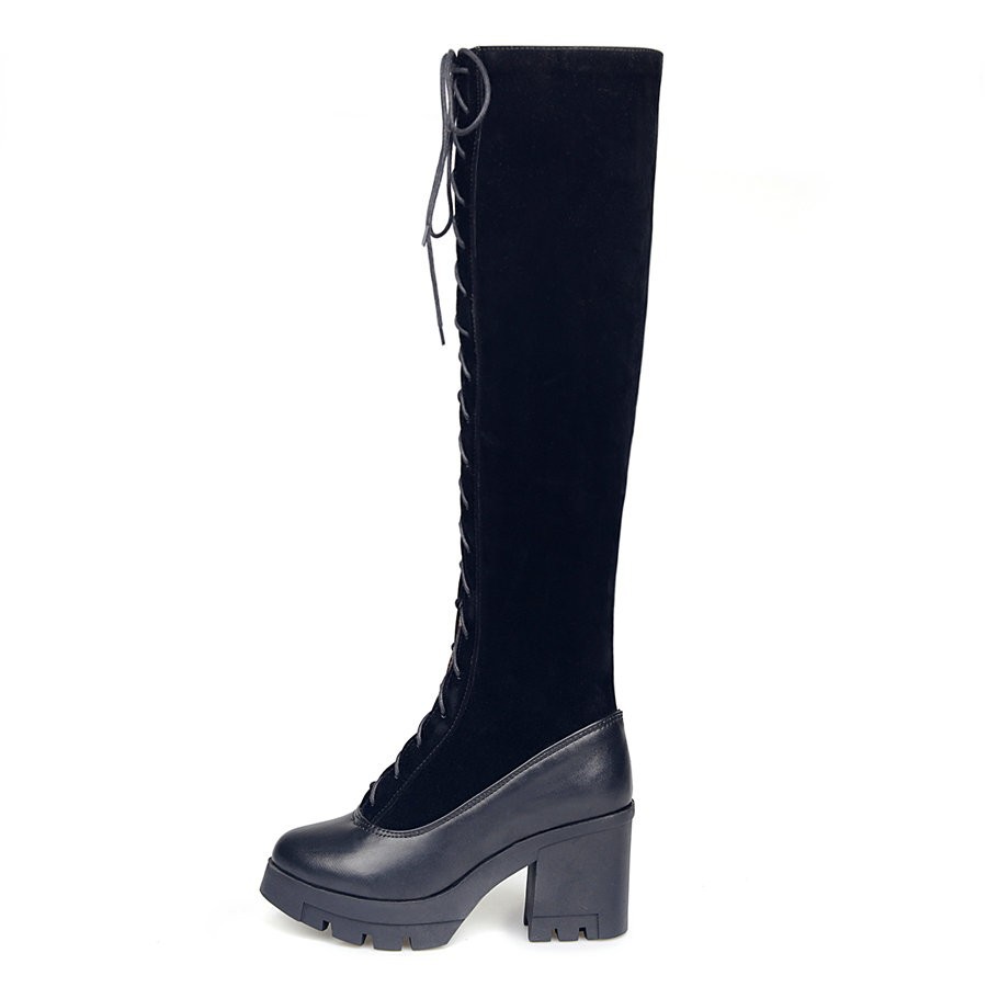 Women Lace Up Knee High Boots Chunky Block High Heel Platform Punk Goth Creepers us 4 4.5 5 6 7 8 9 10 10.5 11