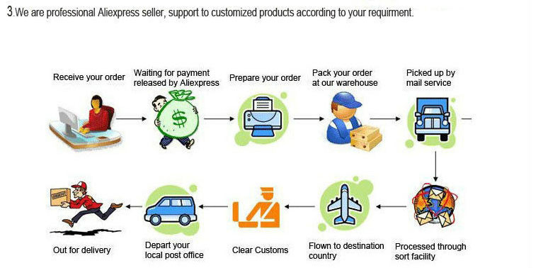 We have three shipping methods: China post (12-19 working days, sometimes about one month), EMS (5-10 working days), DHL (2-5 working days).