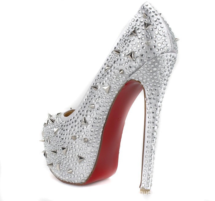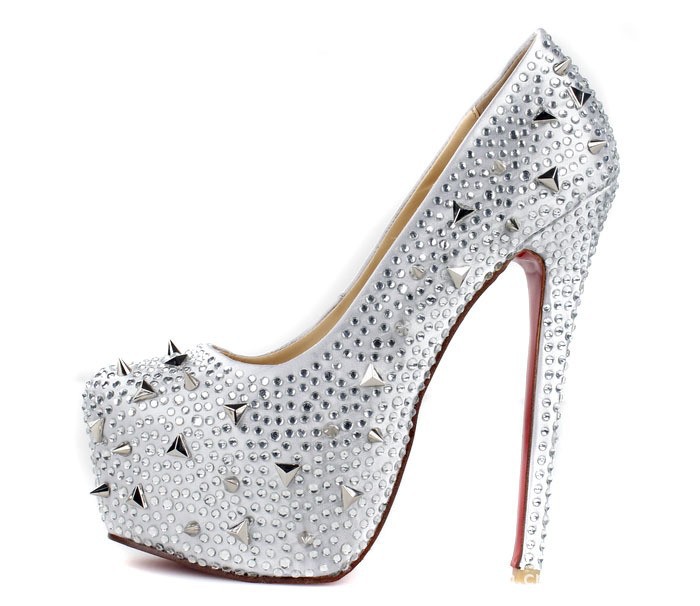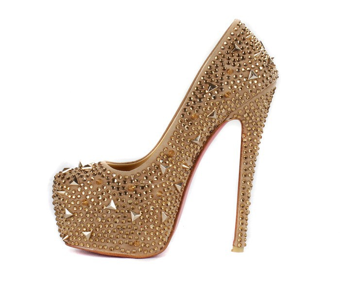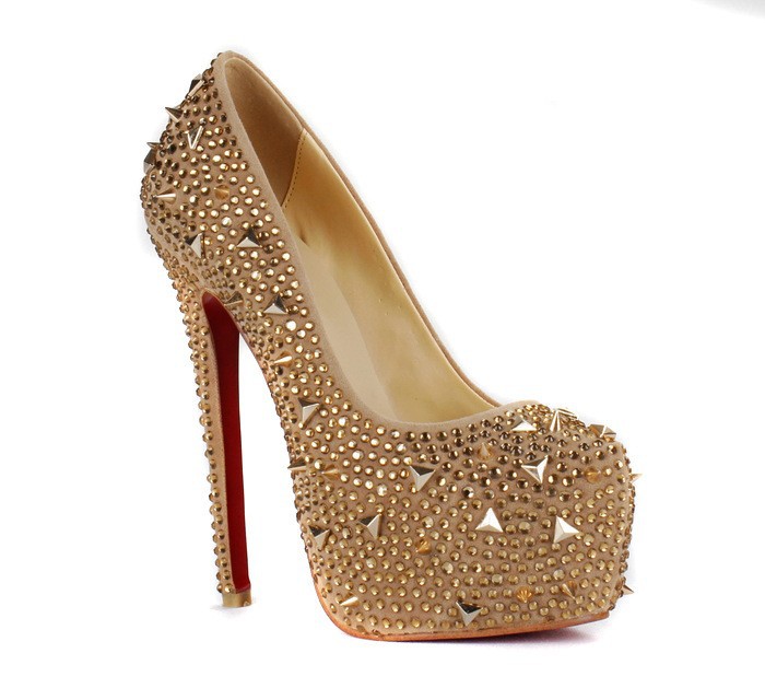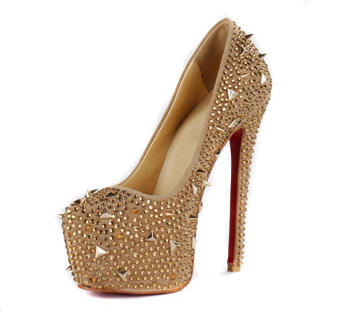 Women Sexy Rhinestone High Heel Pumps, Closed Pointed Toe Rivets Party Gold And Sliver Shoes