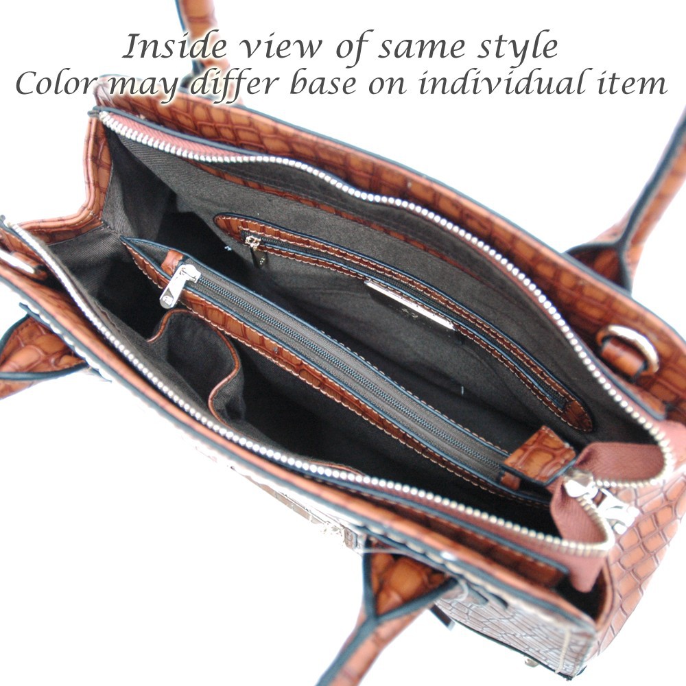 Nice fully lined interior with cell phone pocket,side and center zippered compartments