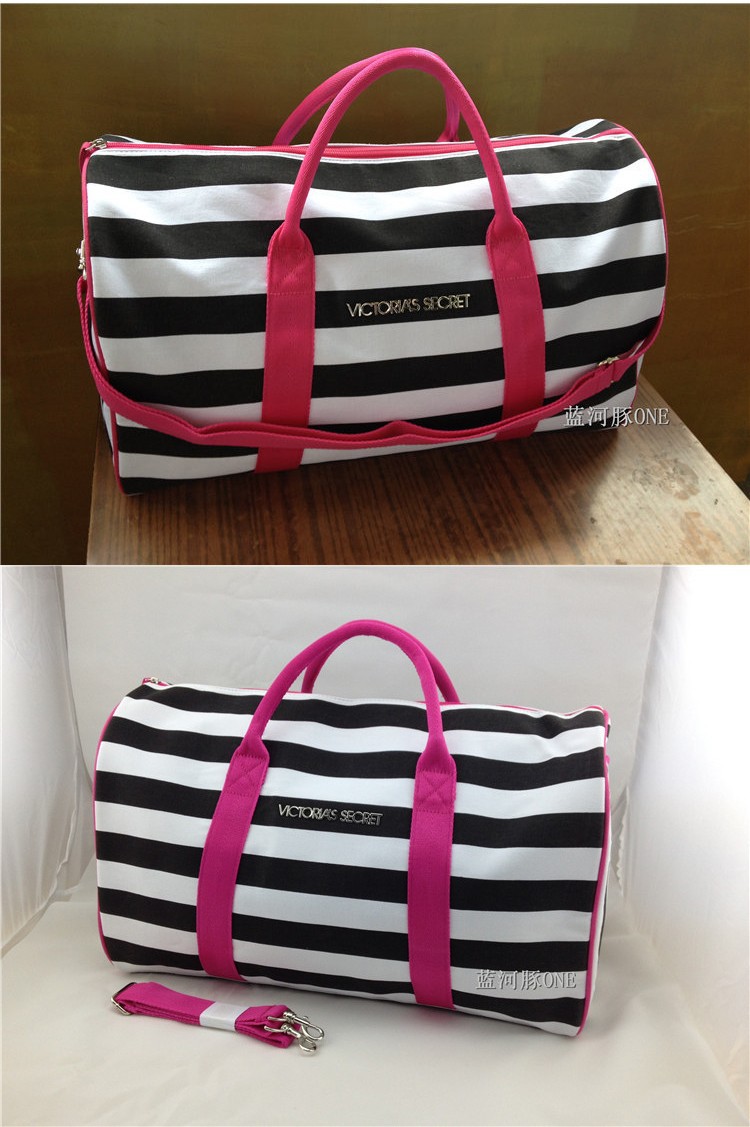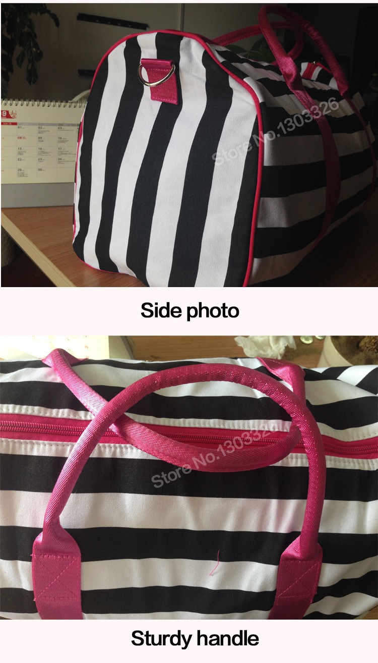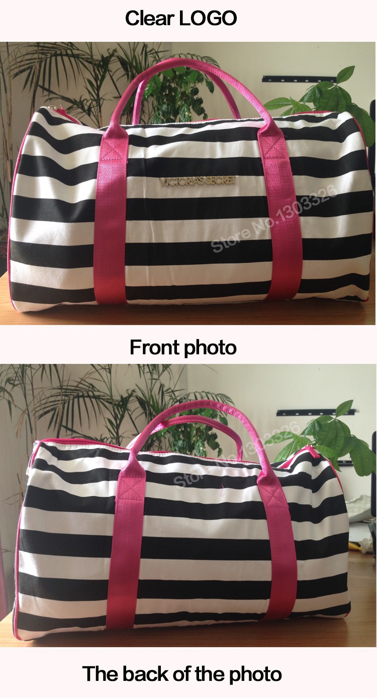 2014 free shipping European fashion VS Black white stripes travel bag Women’s casual bag Messenger bag canvas beach bag Handbag