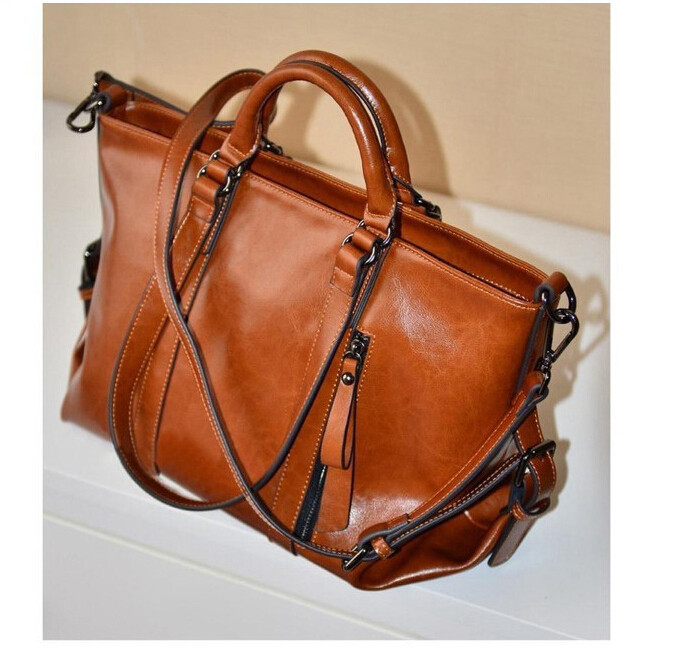 Women’s brown motorcycle bag 2014 New Fashion Wax leather bag portable messenger bag leather handbag ladies shoulder bag TX196