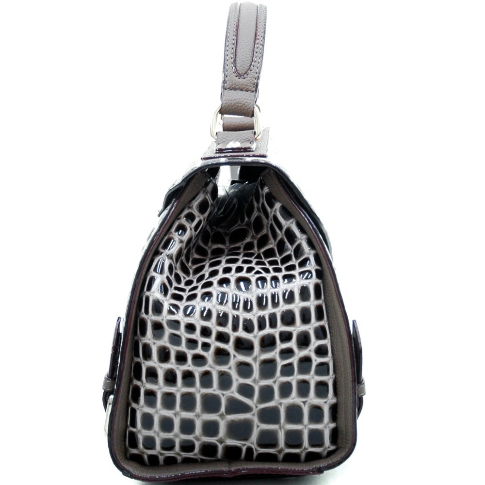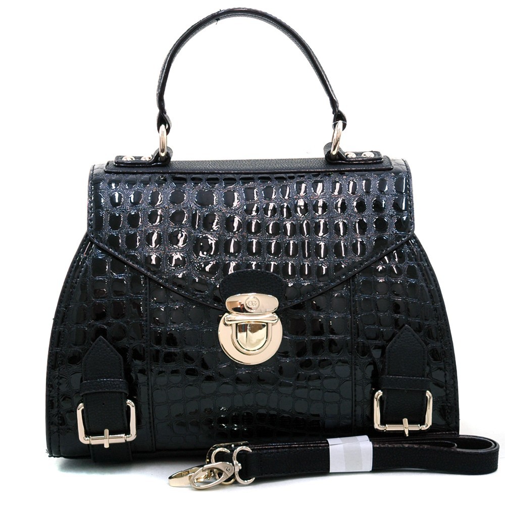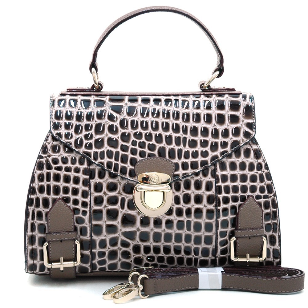 Women’s Buckled Patent Croco Satchel w/ Bonus Strap