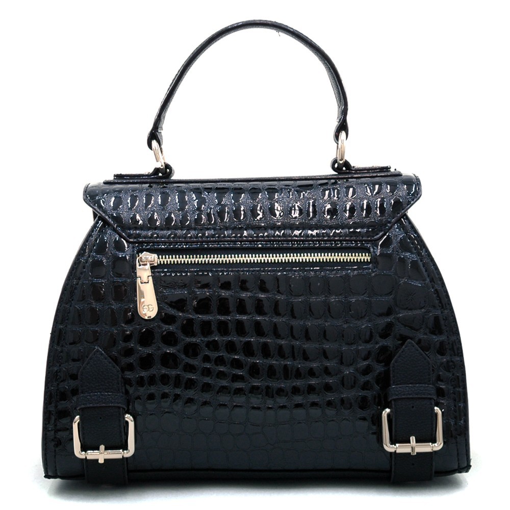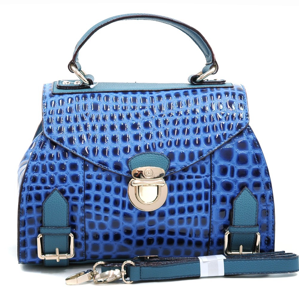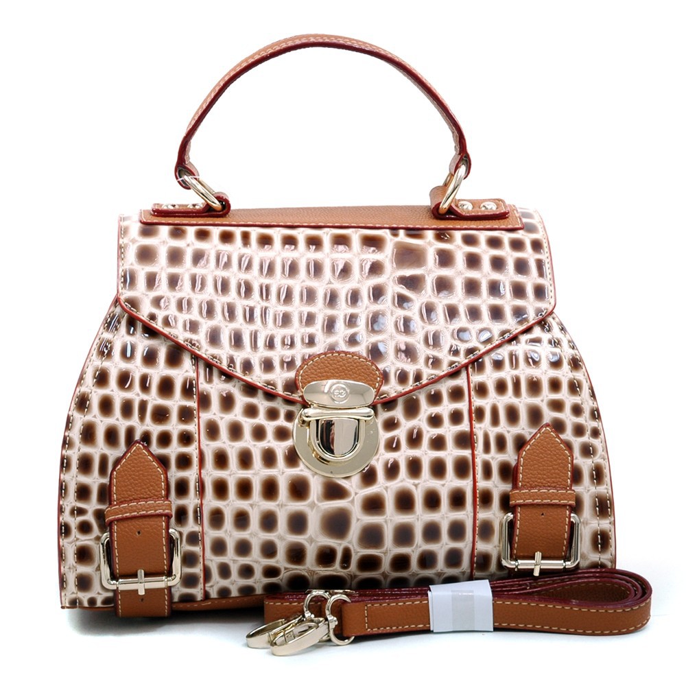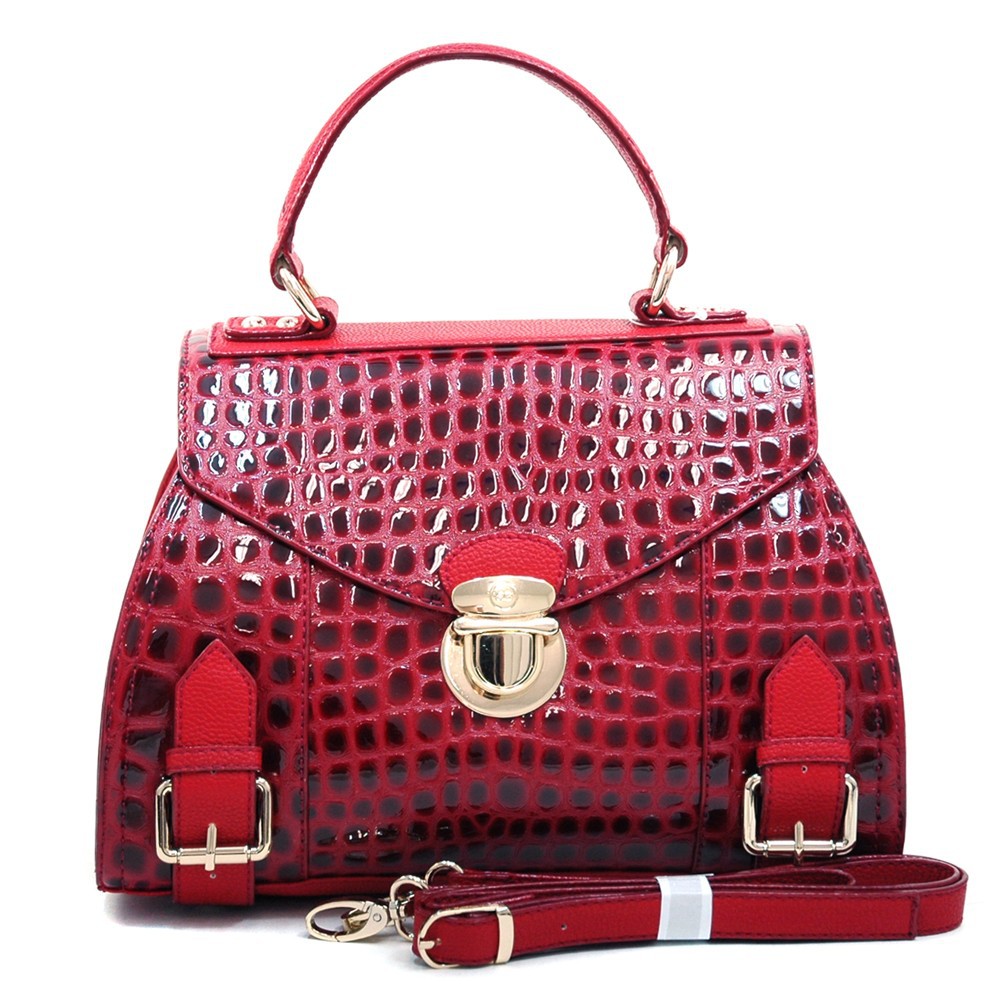 Women’s Buckled Patent Croco Satchel w/ Bonus Strap