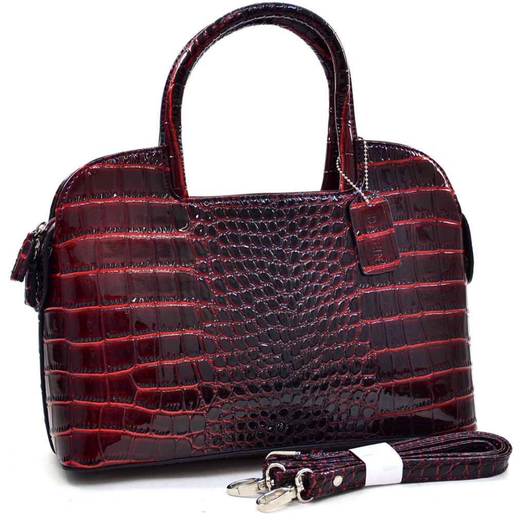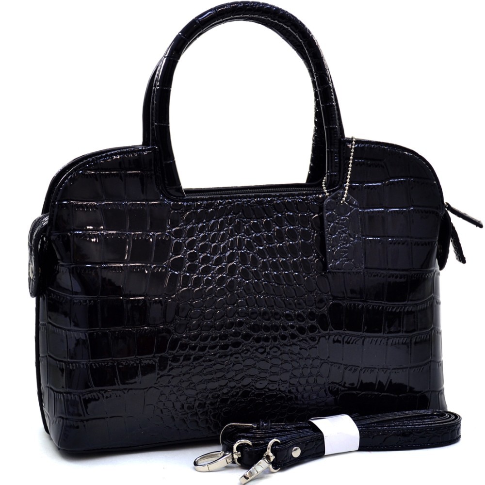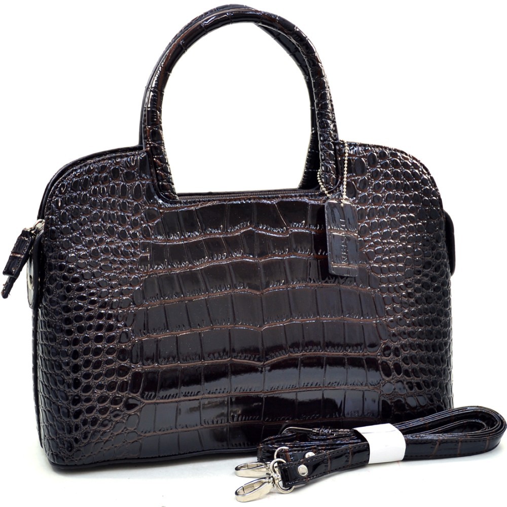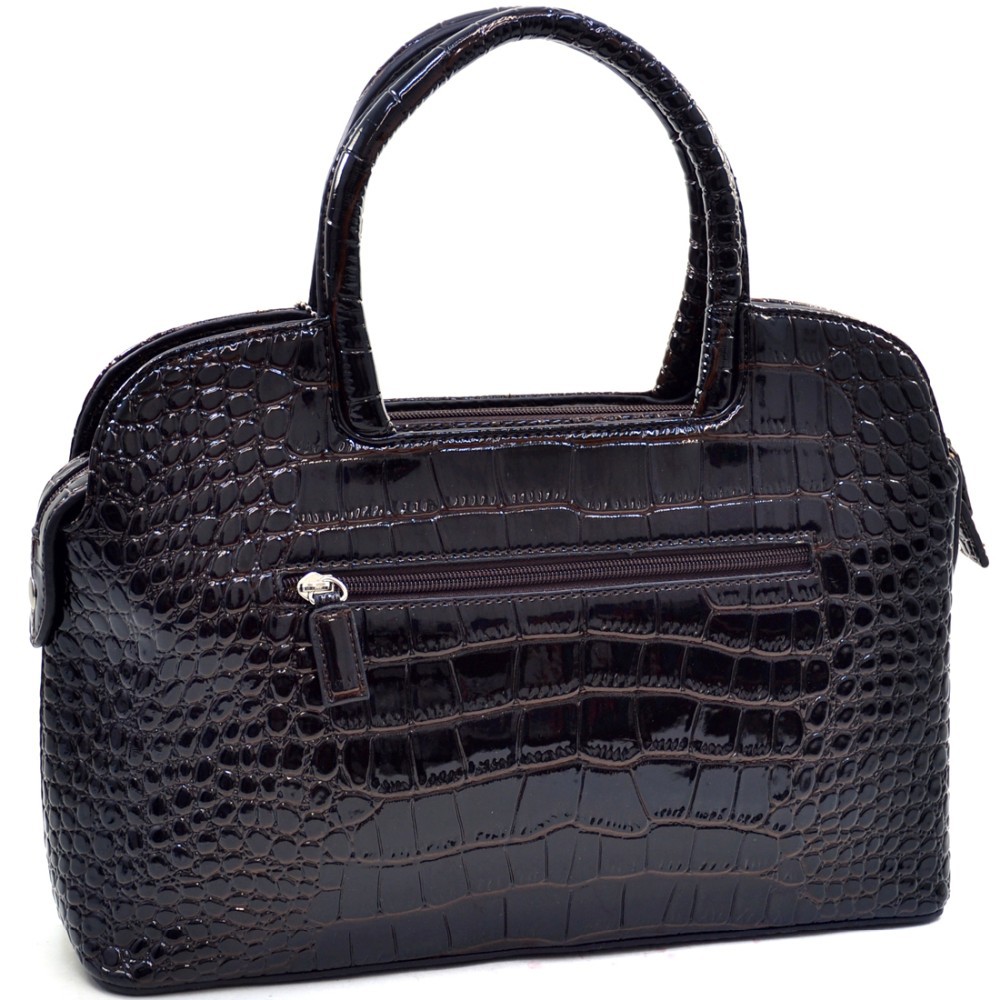 This classic chic patent croco satchel stands out with its glossy finish and sophisticated croco texture. This simple satchel is sleek on the outside, with plenty of room on the inside. Zippered compartments inside helps you organize all of your belongings. Included is a 45″ bonus strap for you to wear comfortably over your shoulder.