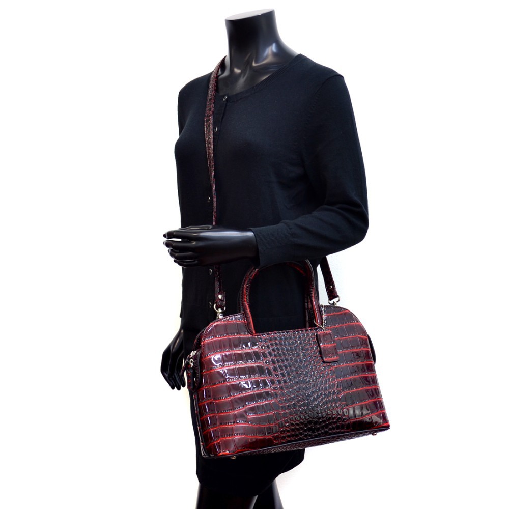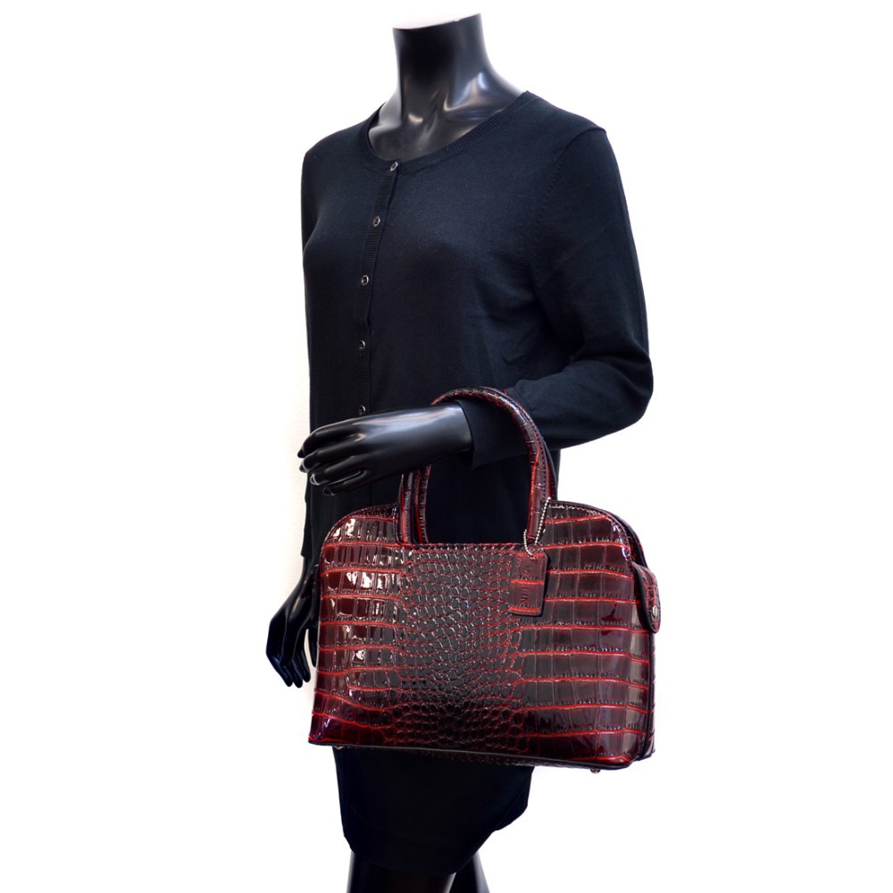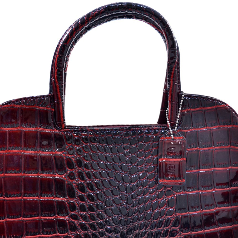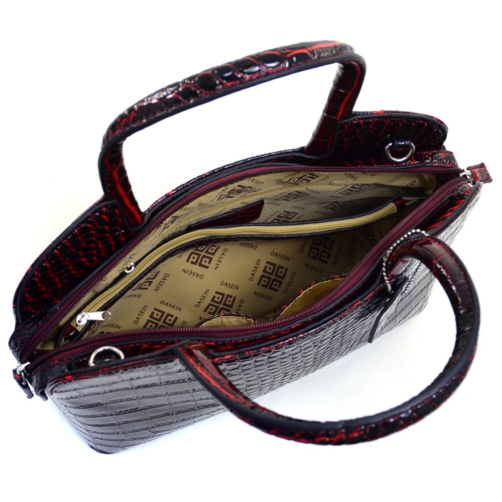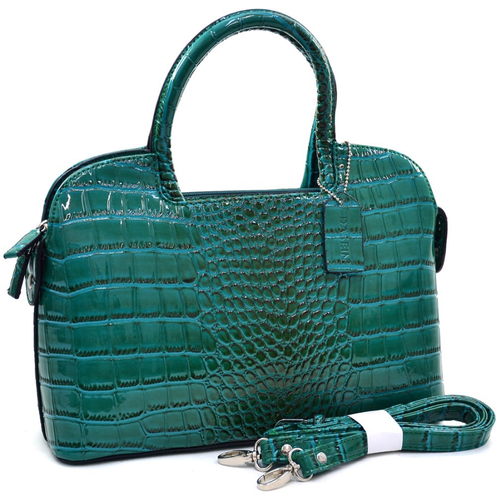 This classic chic patent croco satchel stands out with its glossy finish and sophisticated croco texture. This simple satchel is sleek on the outside, with plenty of room on the inside. Zippered compartments inside helps you organize all of your belongings. Included is a 45″ bonus strap for you to wear comfortably over your shoulder.