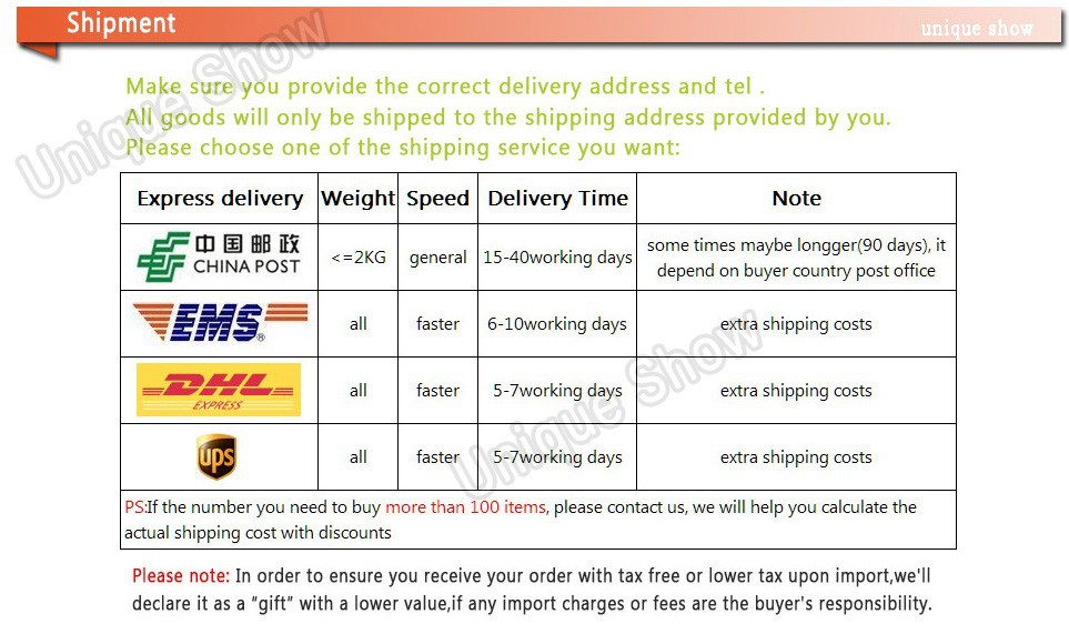 | Post Air Mail | Free Shipping | 15 - 45 days |